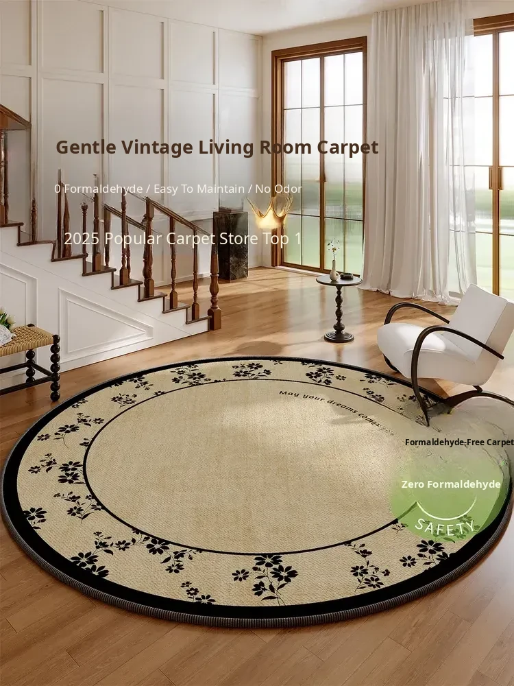 2025 New Round Waterproof and Stain-Resistant Vintage Style Carpet for Living Room – Luxurious and Spacious Area Rug for Bedrooms and Large Spaces