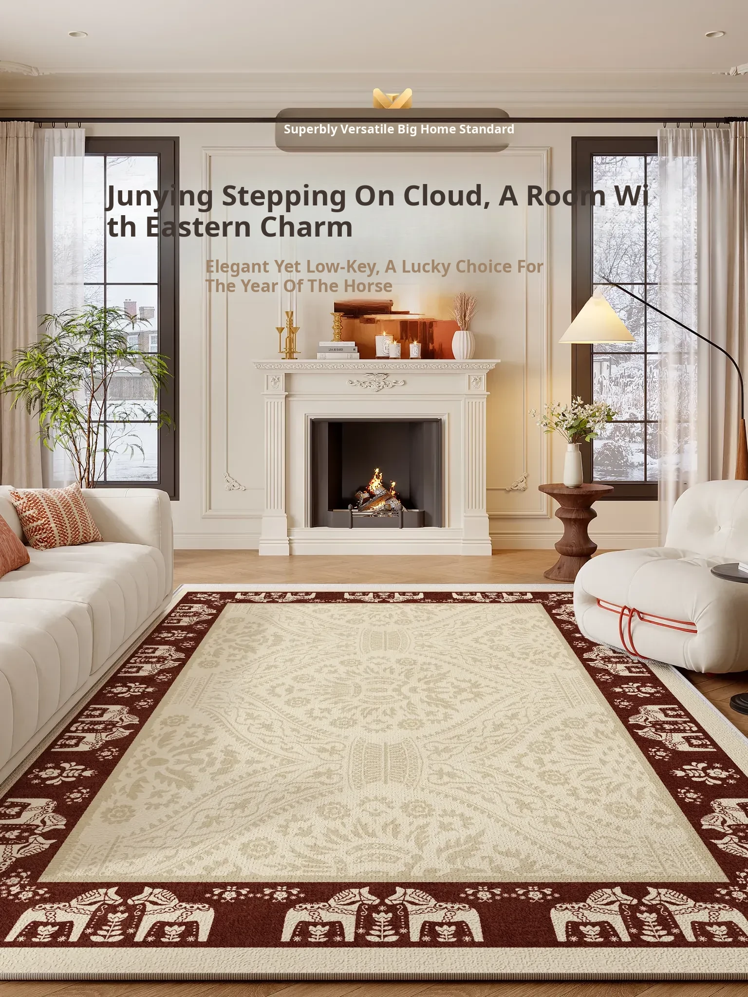 New Year Red Carpet for Living Room - Luxurious Large Area Rug in Modern Chinese Style, Perfect for Bedroom or Bedside, Machine Washable, Ideal for Year of the Horse Celebrations