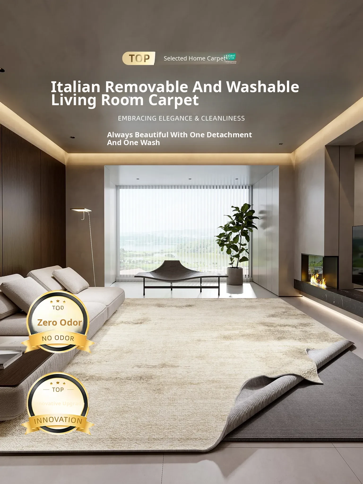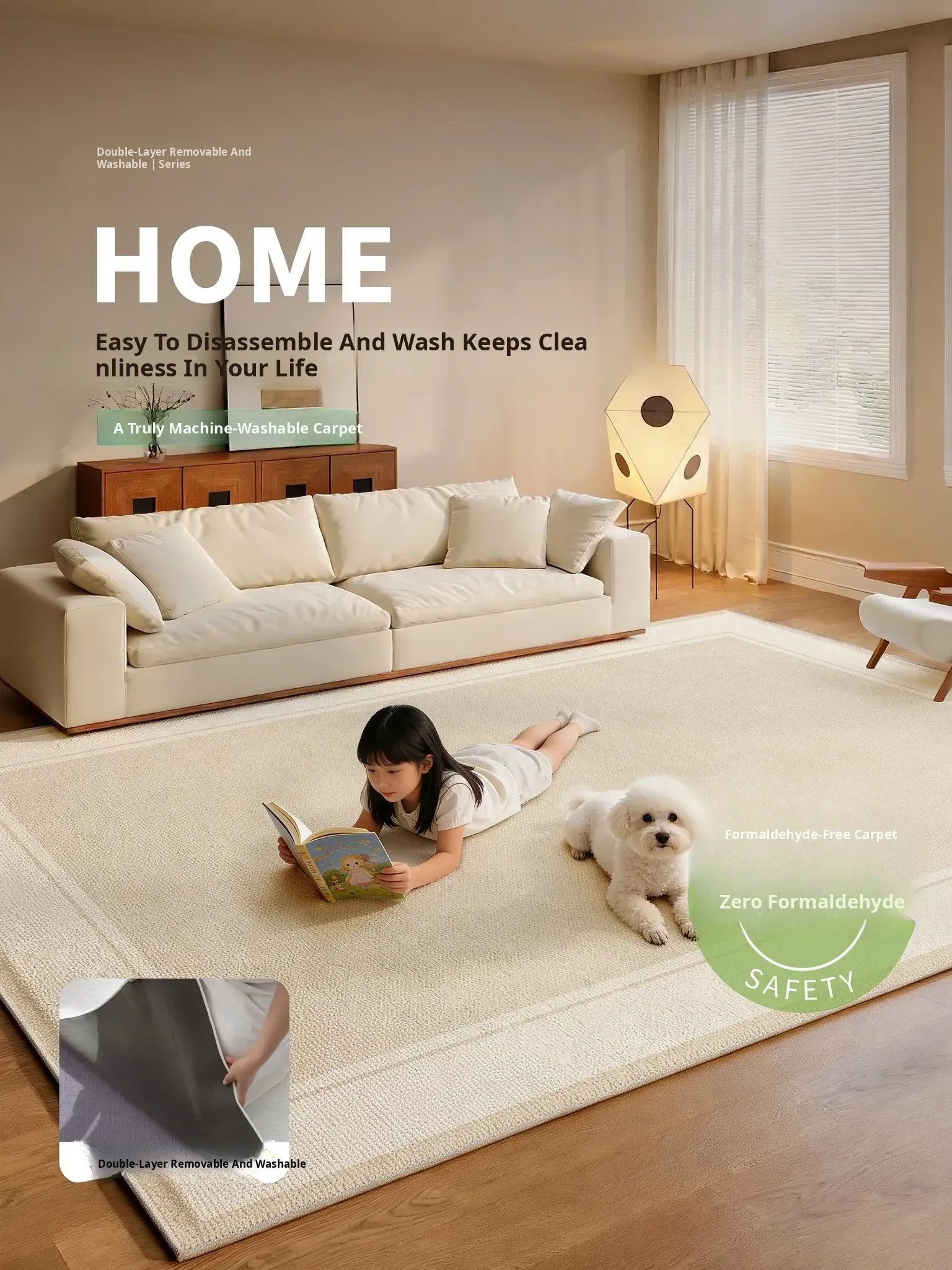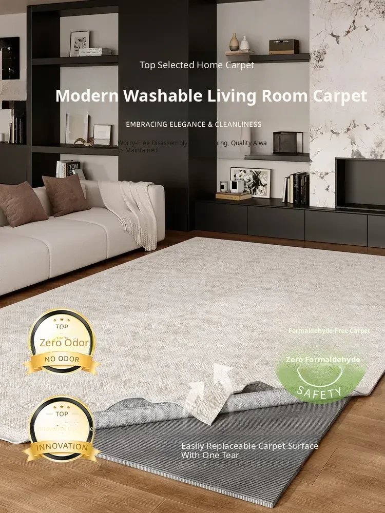 Machine Washable Detachable Carpet for Living Room - Italian Minimalist Design, Double-Layered High-End Quality, Perfect for Bedroom and Bedside, Effortless Cleaning with Stain Resistance