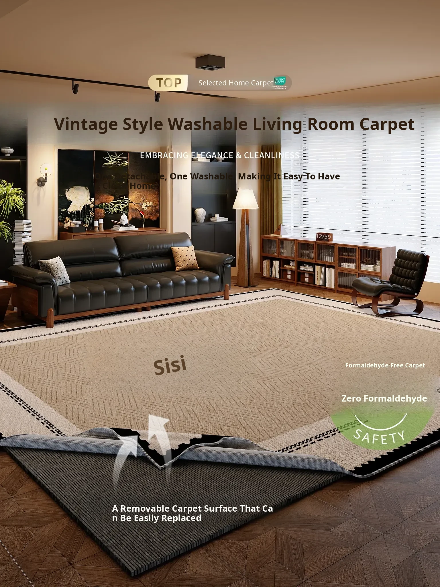 Vintage Style Removable and Washable Carpet for Living Room - 2026 New Collection, No Need to Wash, Easy to Clean, Double Layer, Thickened Design