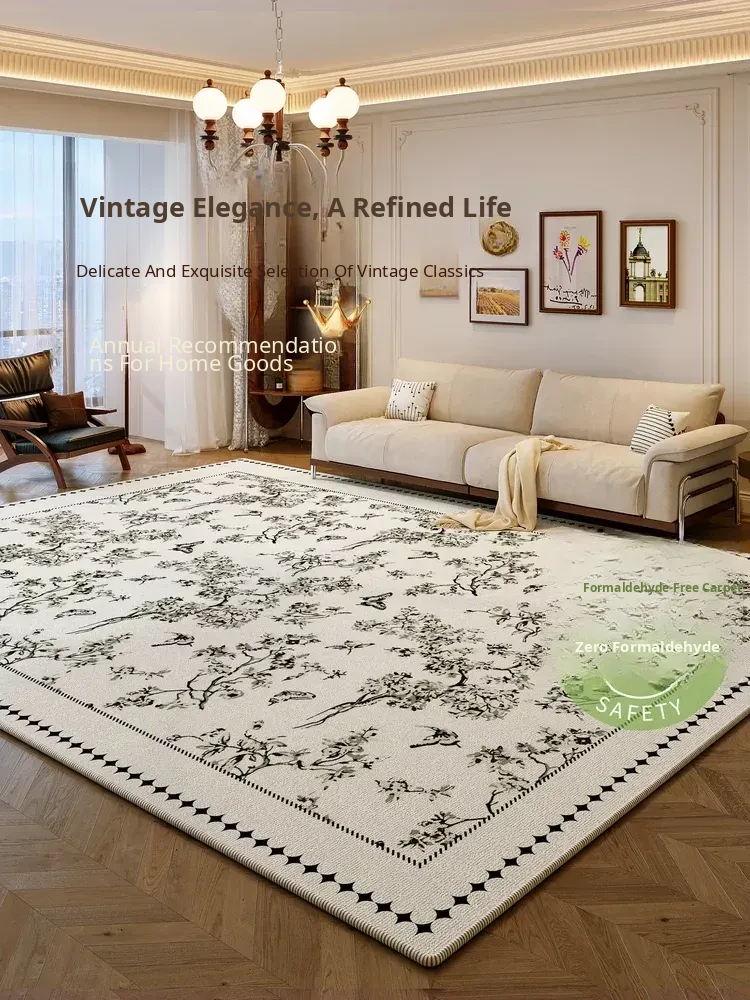 Vintage Area Rug for Living Room - 2025 New Collection, Easy-Clean Sofa and Coffee Table Mat, French Chic Waterproof Floor Carpet, Effortlessly Elevate Your Space with Luxurious Style!