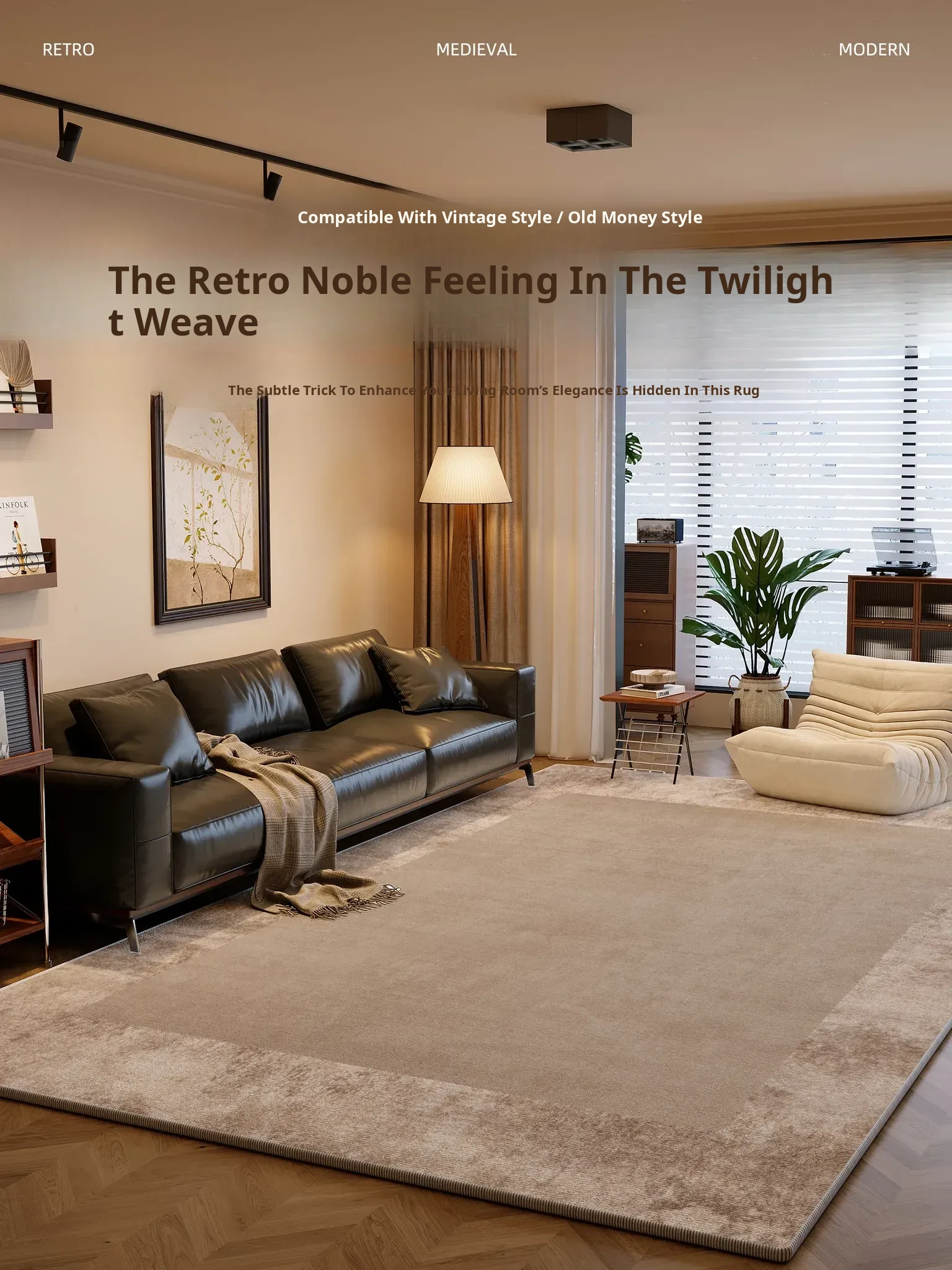 Vintage-Inspired Non-Washable Area Rug for Living Room - 2025 New Collection, Easy-Clean Soft Carpet for Couch & Bedroom, Elevate Your Home with Luxurious Comfort