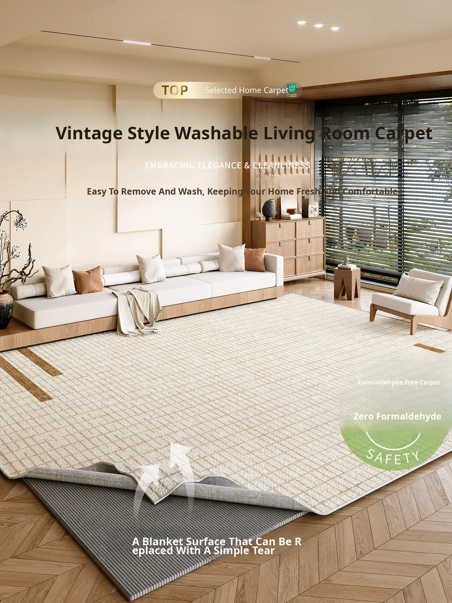 2026 New Premium Cream-Style Rug - Minimalist Waterproof and Stain-Resistant Mat for Living Room and Bedroom - Easy Care Bedside Carpet