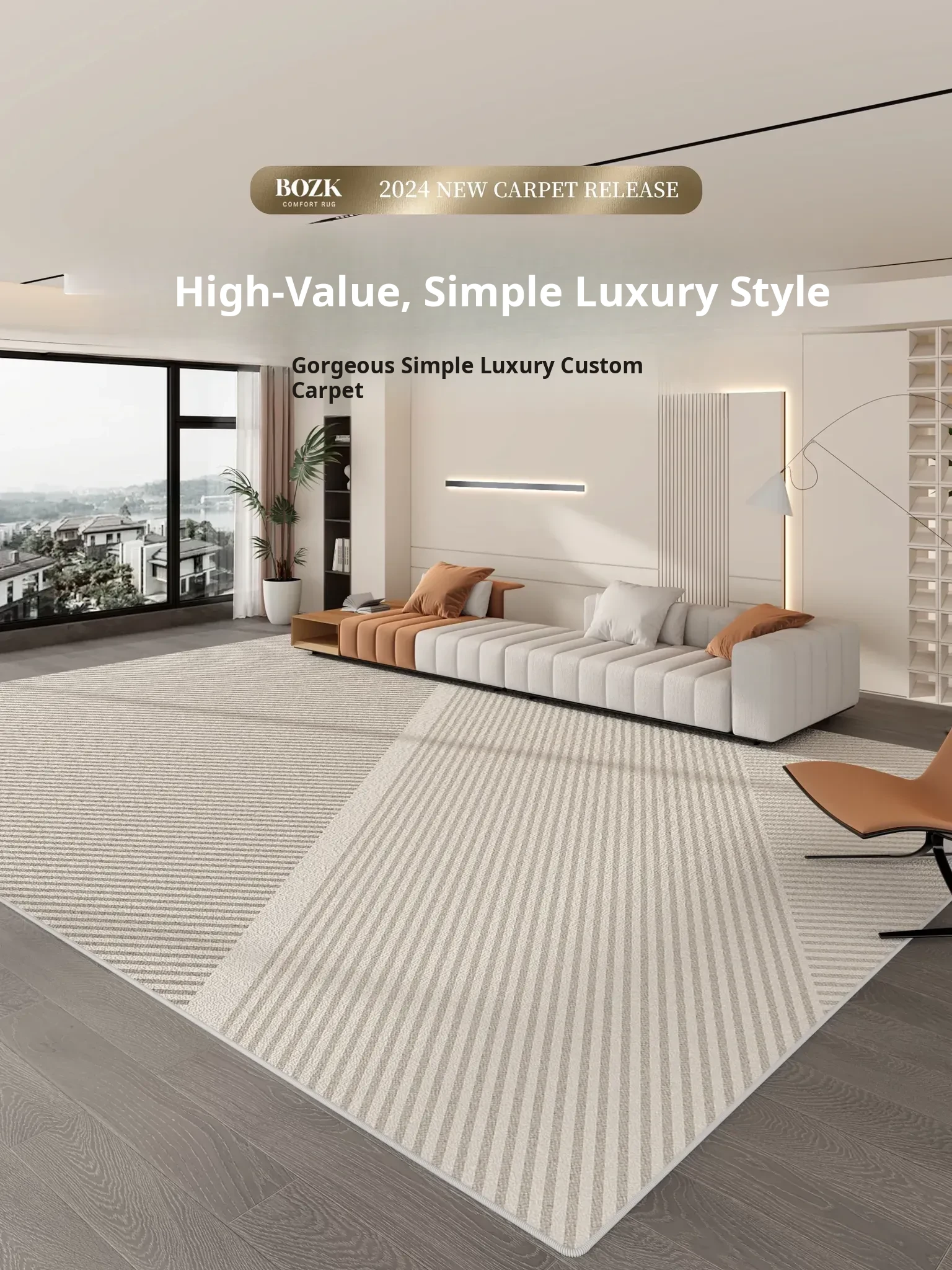 Minimalist Luxury Area Rug - 2025 New Design for Living Room & Bedroom, Waterproof & Stain-Resistant, Perfect for Large Spaces and Bedside Use