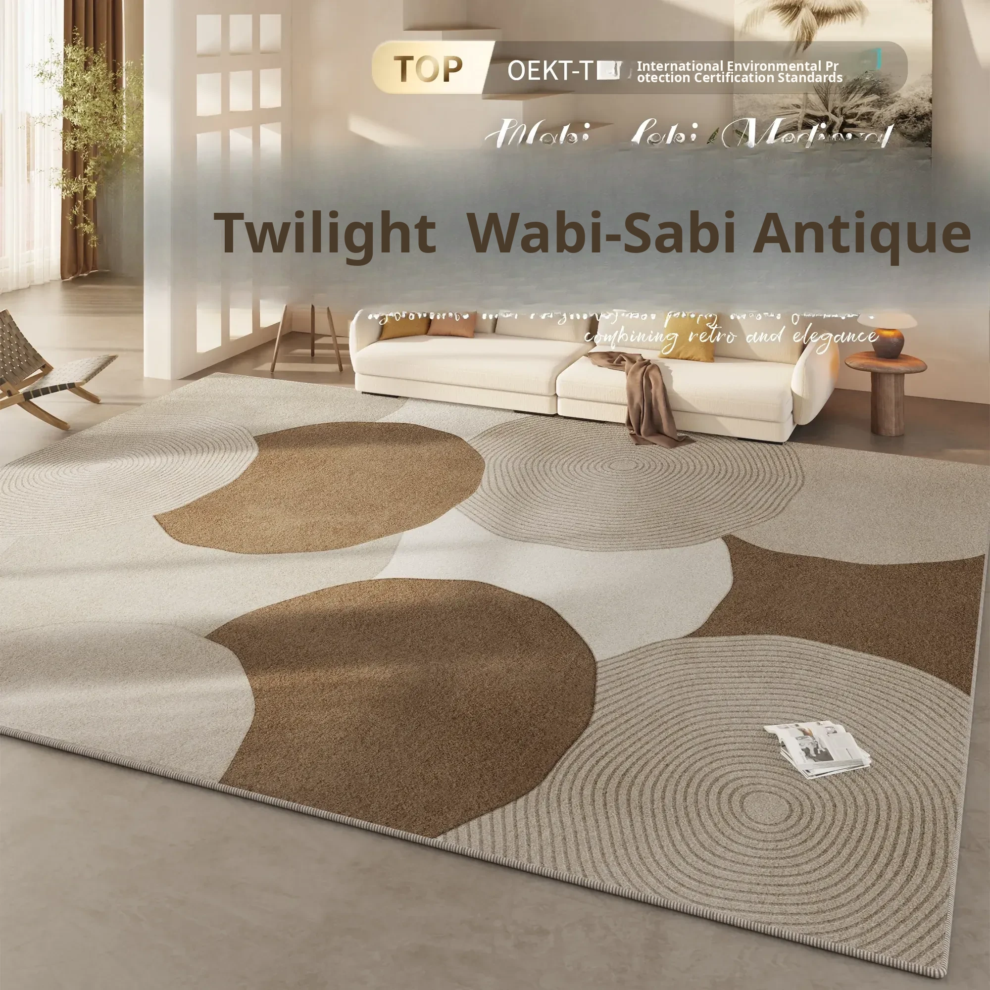 2025 New Vintage Wabi-Sabi Style Living Room Carpet - Water-Resistant, Thick Area Rug for Sofa and Coffee Table, Perfect Bedroom Bedside Mat