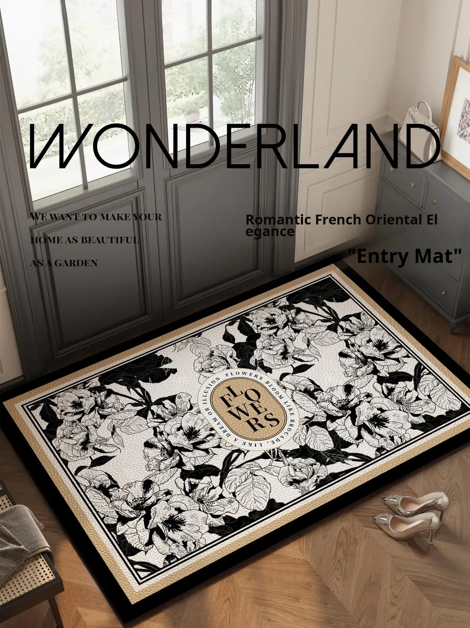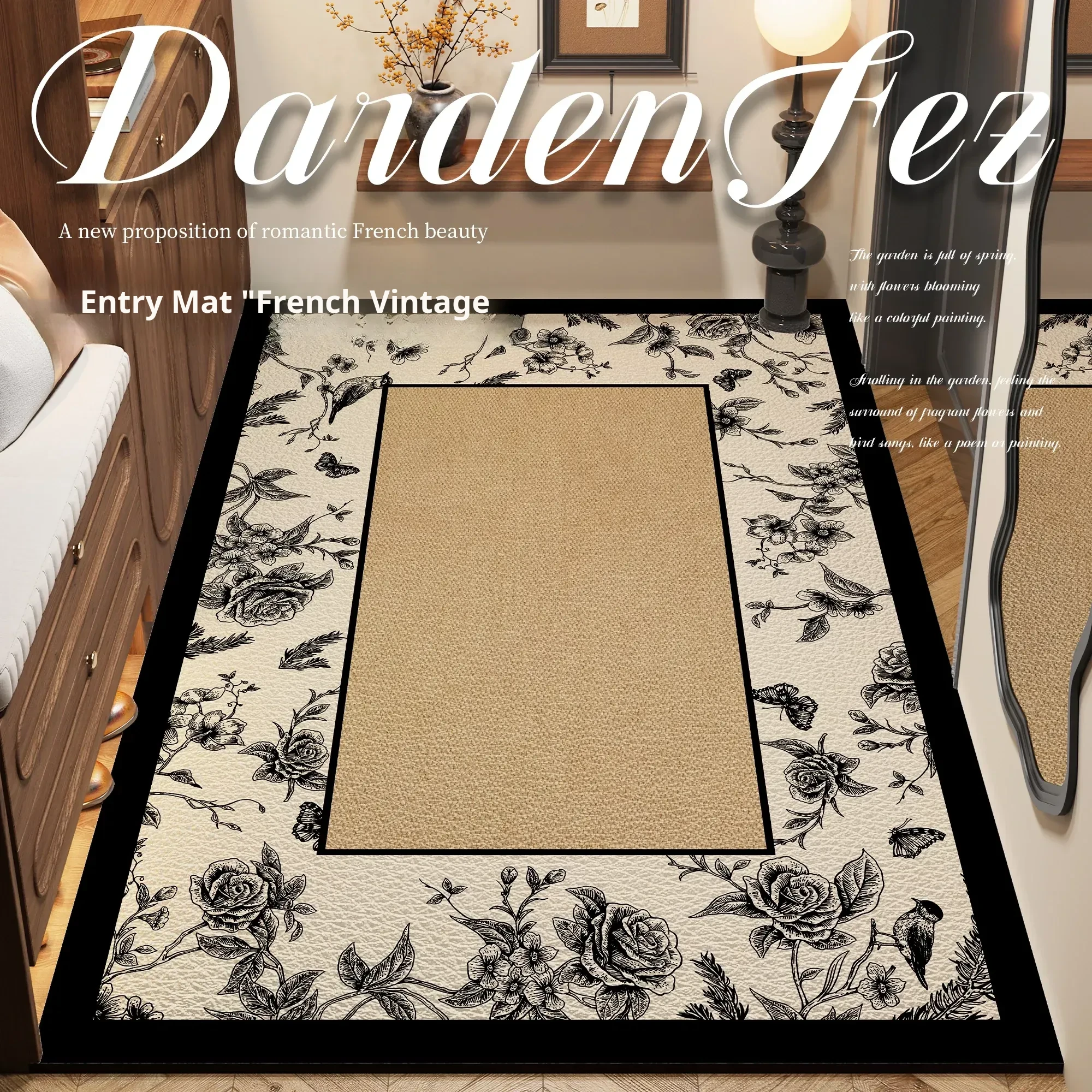 French Vintage Entrance Door Mat - Waterproof, Easy-Clean PVC Floor Mat with Non-Slip Leather Design for Home Entryway - Stylish and Practical Welcome Mat