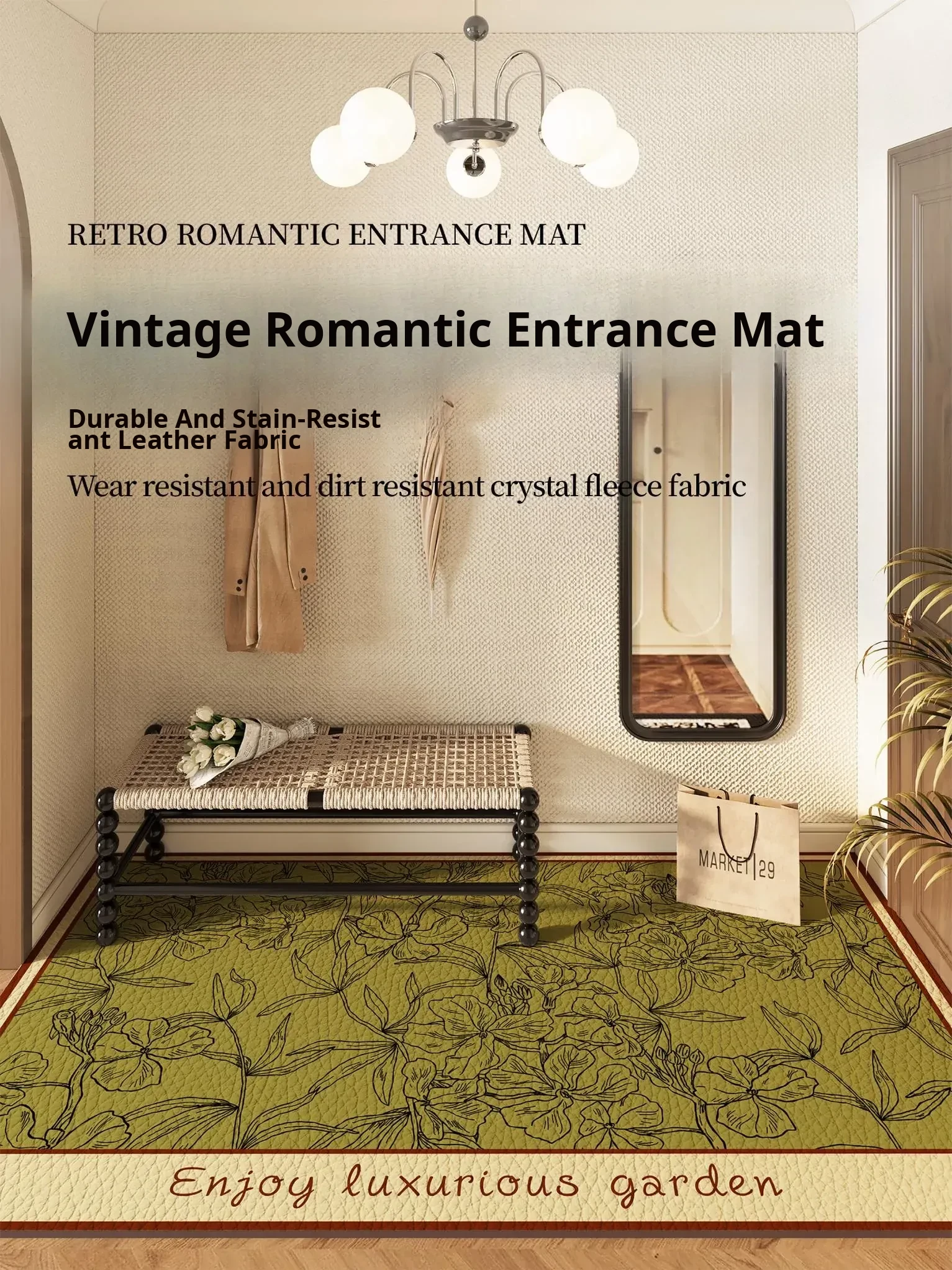 Vintage-Inspired Luxury Entryway Mat - PVC, Easy to Clean, Stain-Resistant, Customizable Size - Perfect for Your Home Entrance