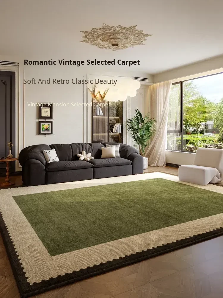 2026 New Vintage French Green Carpet for Living Room - Waterproof, No Wash Required, Elegant Mat for Sofa & Bedroom