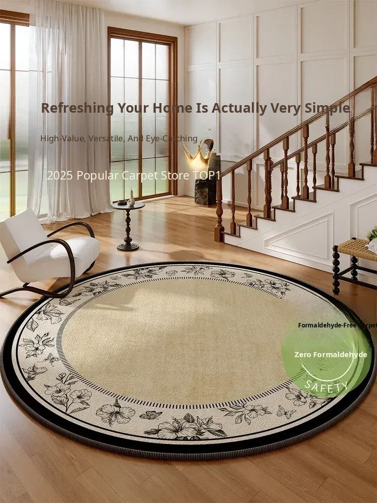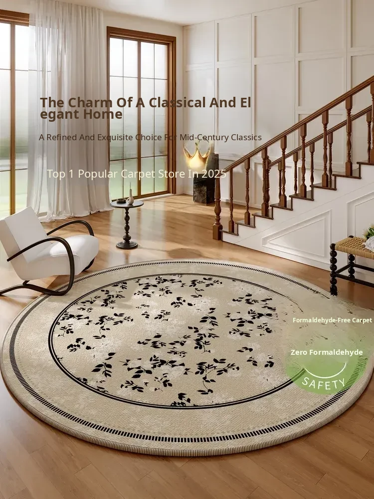 2025 New Round Waterproof and Stain-Resistant Vintage Style Carpet for Living Room – Luxurious and Spacious Area Rug for Bedrooms and Large Spaces