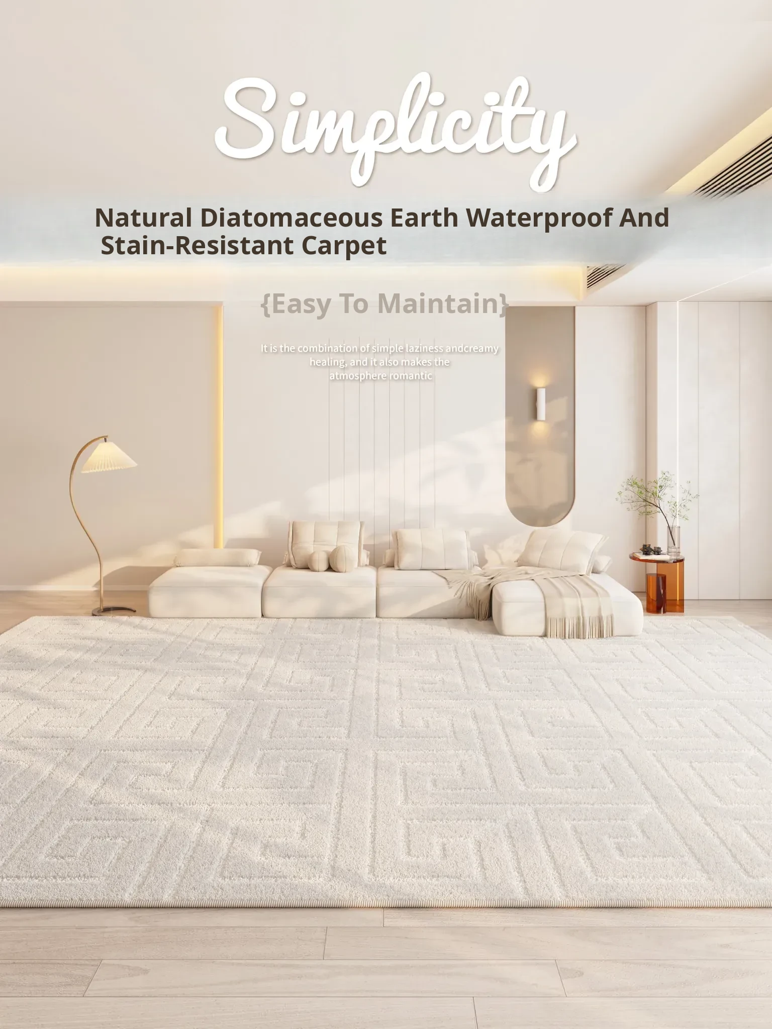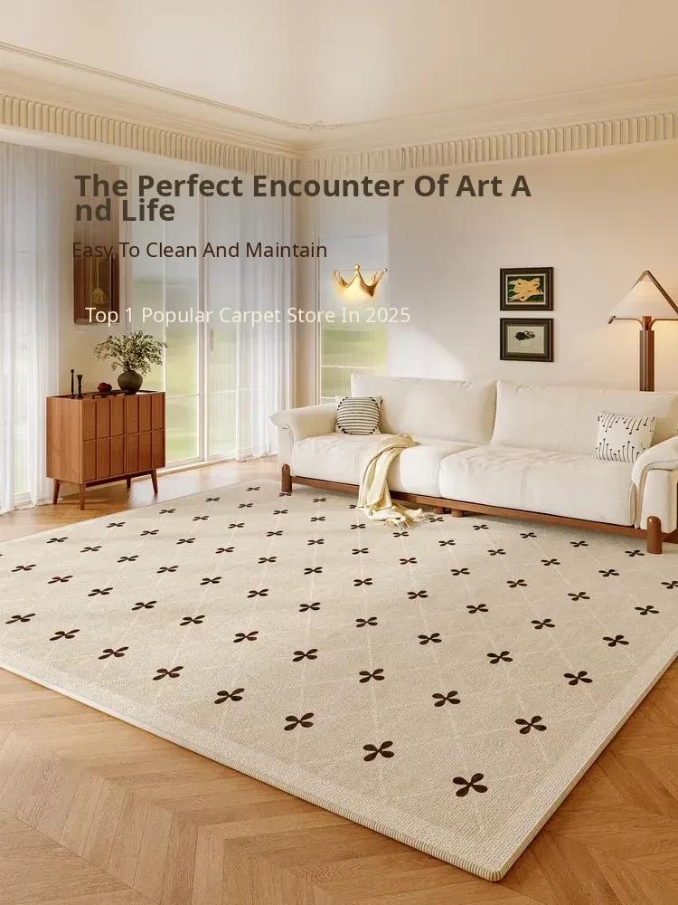 2025 New Creamy Style Waterproof and Stain-Resistant French Area Rug – Large Silica Fiber Carpet for Living Room and Bedroom, Perfect for Cozy Spaces!