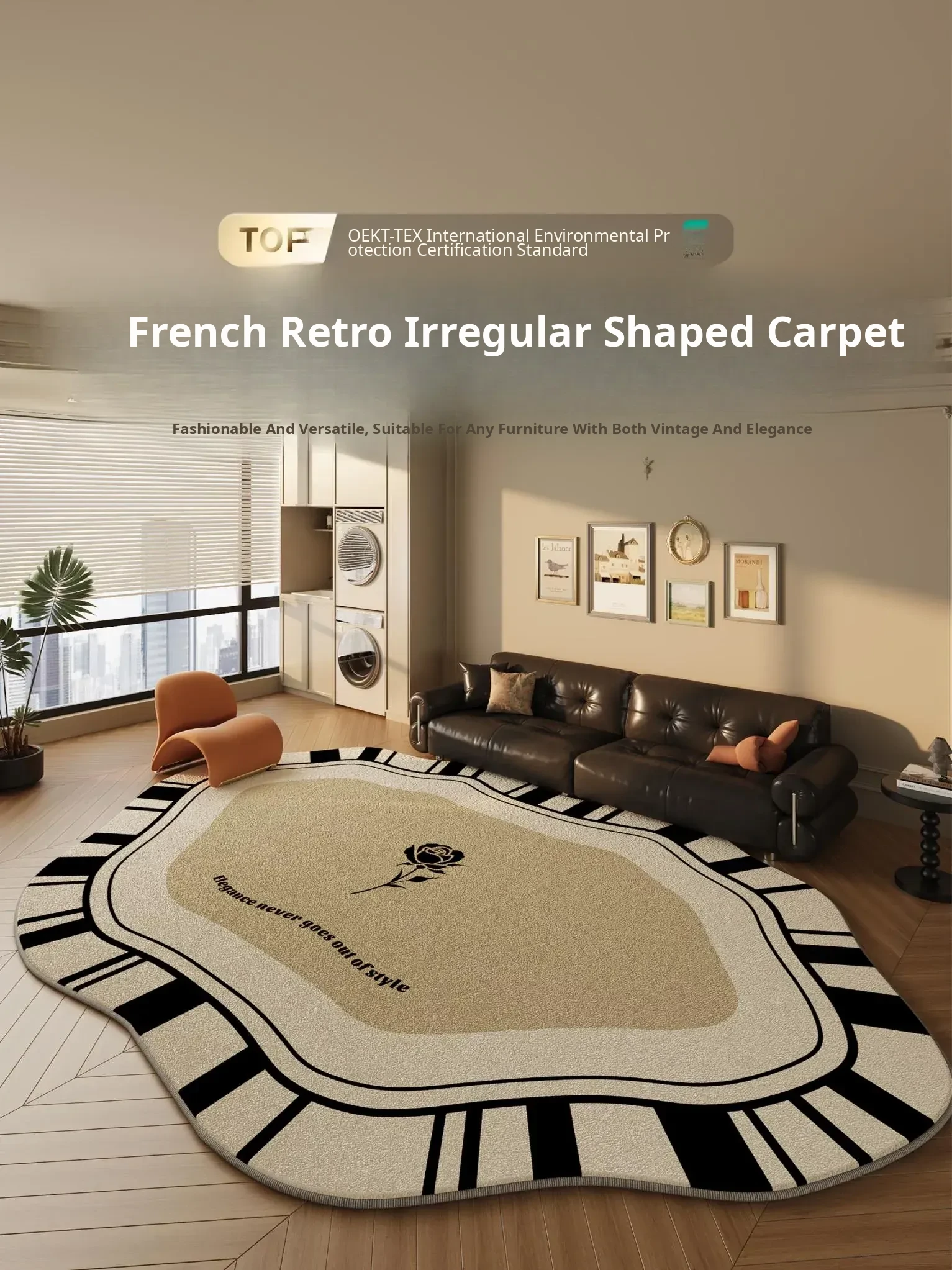 Retro Chic Living Room Carpet - Luxurious Vintage Style Sofa Mat, Stain-Resistant Bedroom Area Rug, Easy-Clean Design for Effortless Elegance