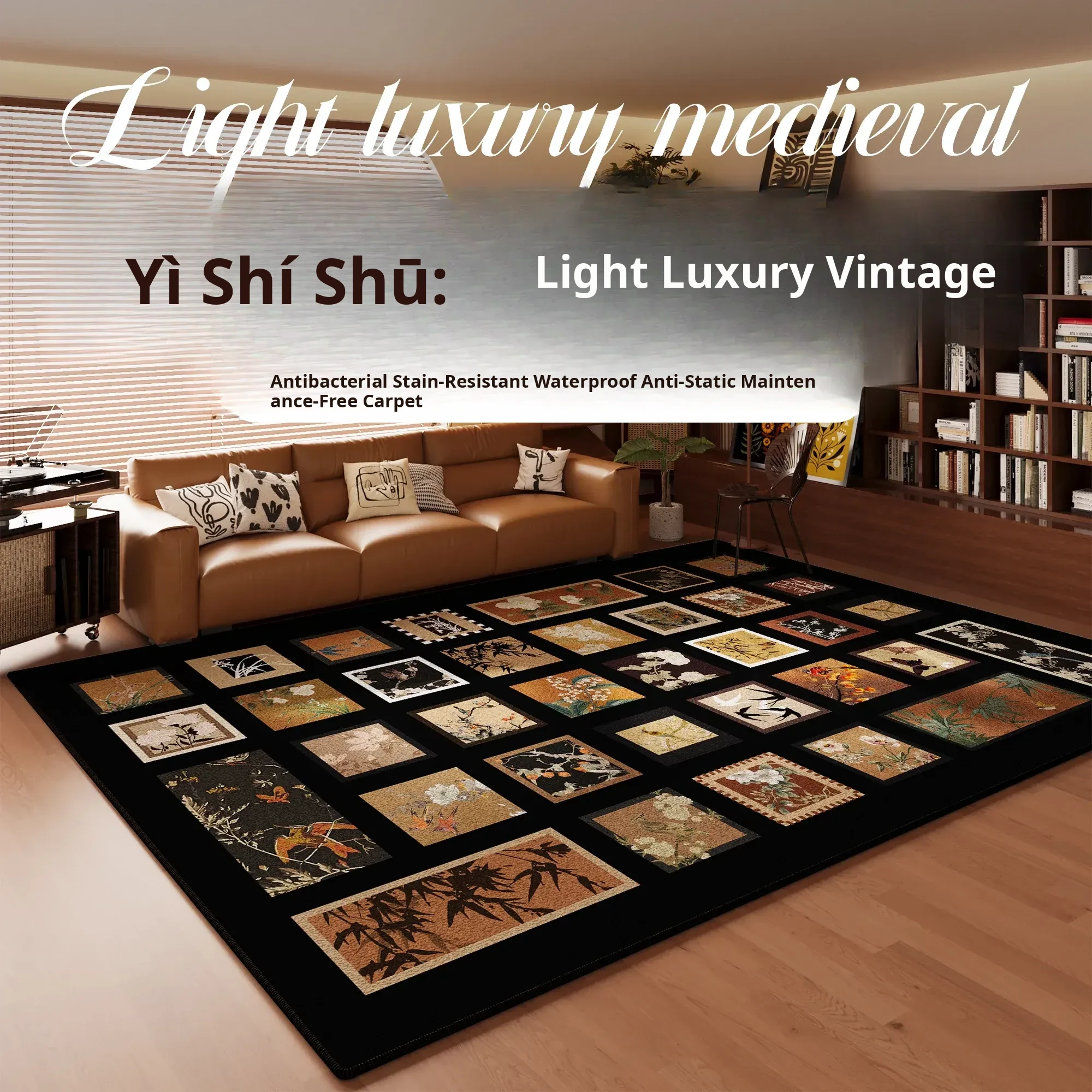 2025 New Vintage Style Carpet - Luxurious Touch for Living Room, Waterproof and Stain-Resistant Sofa and Coffee Table Mat, Perfect for Bedroom or Bedside Use