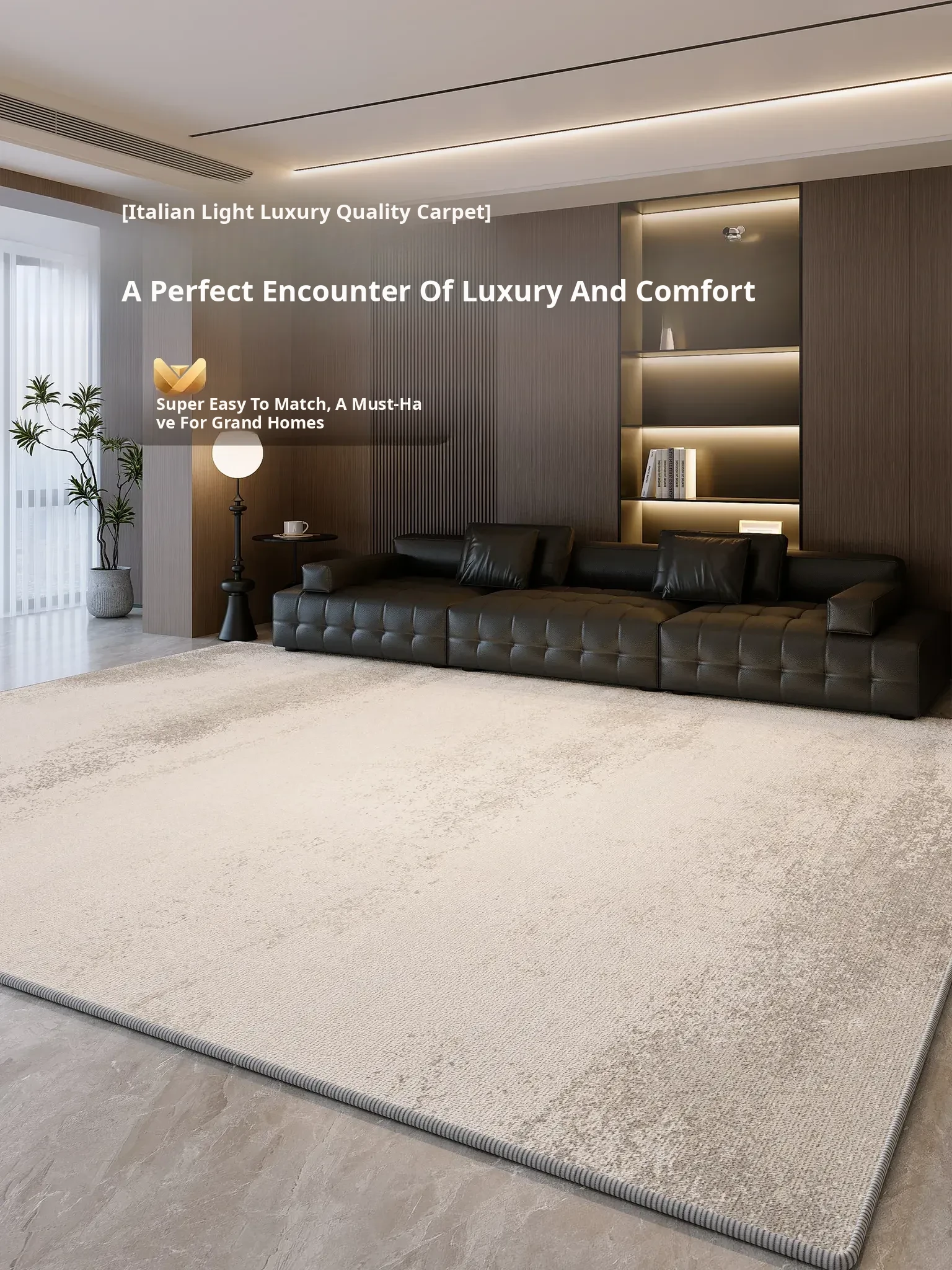 2025 New Italian Minimalist Luxury Living Room Carpet - Waterproof & Stain-Resistant Large Area Rug for Bedroom and Living Spaces