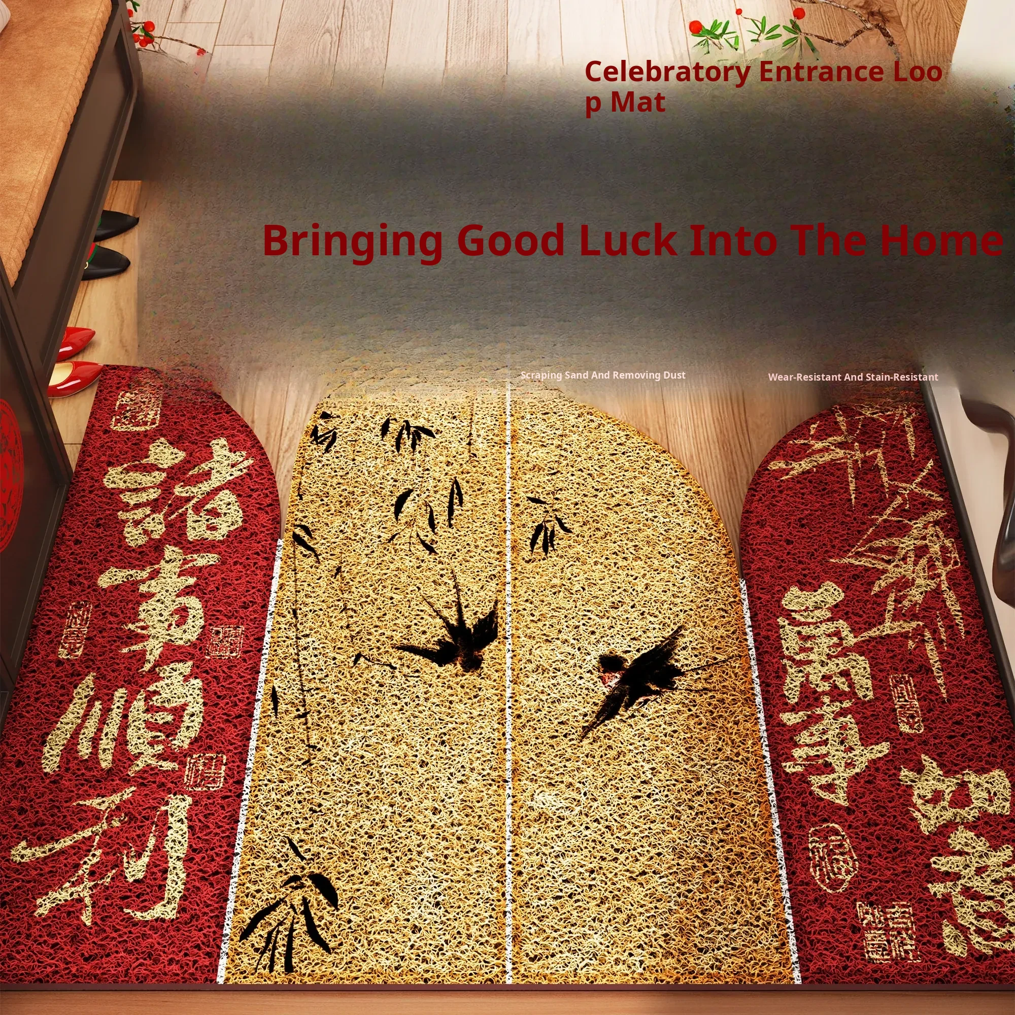"Fortunate Welcome Doormat - Festive Red Carpet for New Home, Perfect for Entryway and Shoe Changing, Cozy and Stylish Floor Mat"