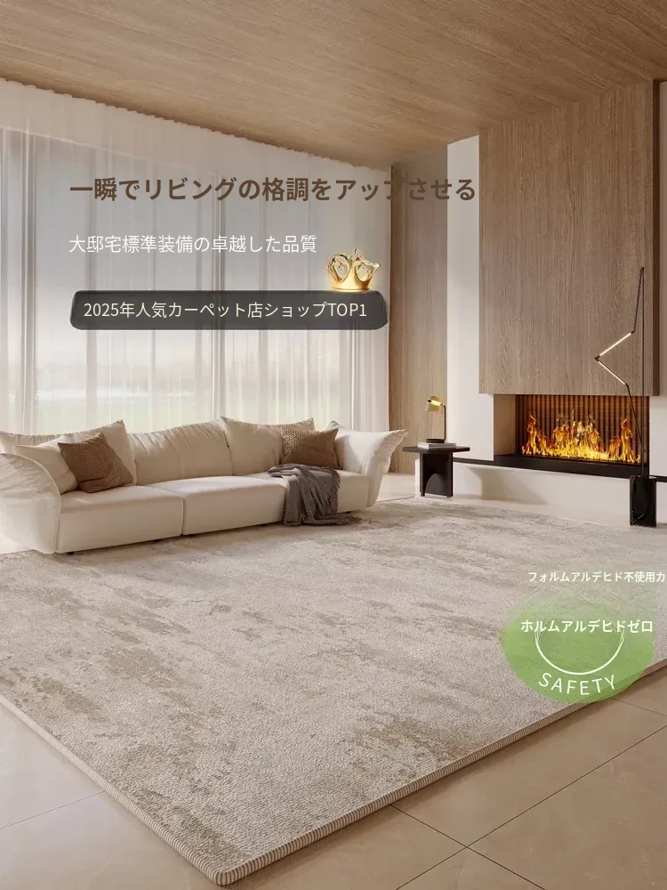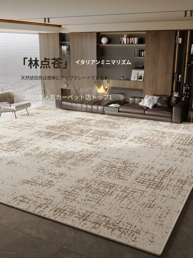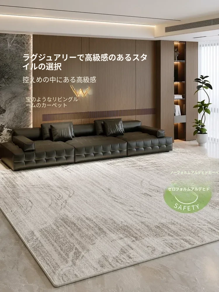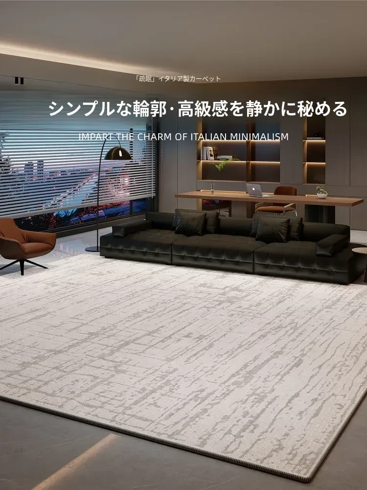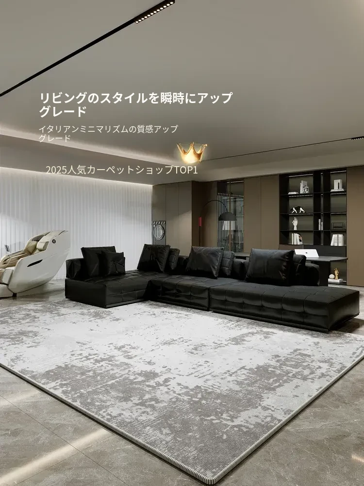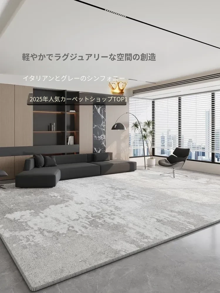 イタリアンミニマルリビングラグ2025新作!高級感溢れる軽やかなデザイン、洗濯不要でお手入れ簡単。広いスペースにもぴったりな大判サイズで、ソファの下にも全体を美しく演出します。
