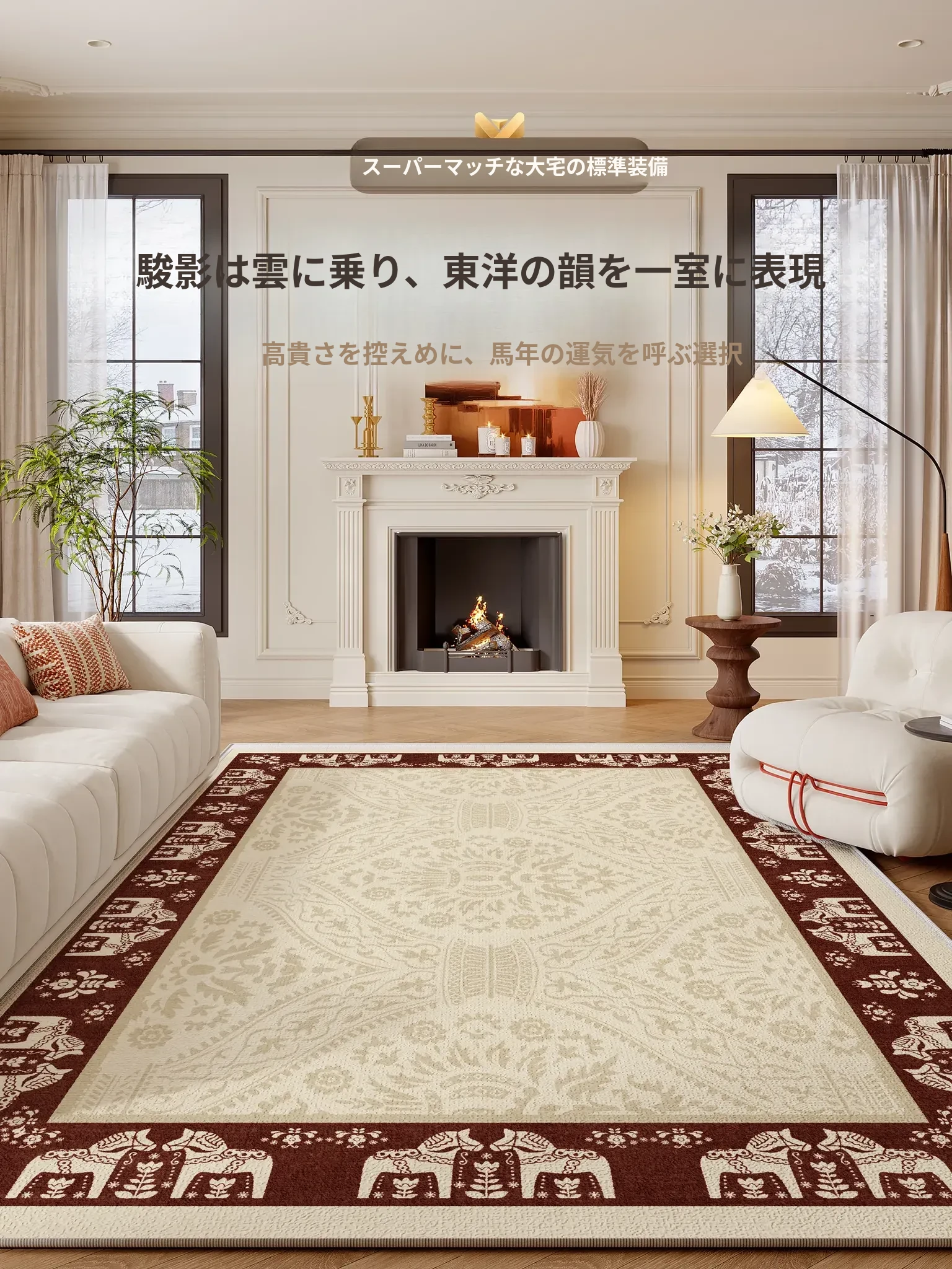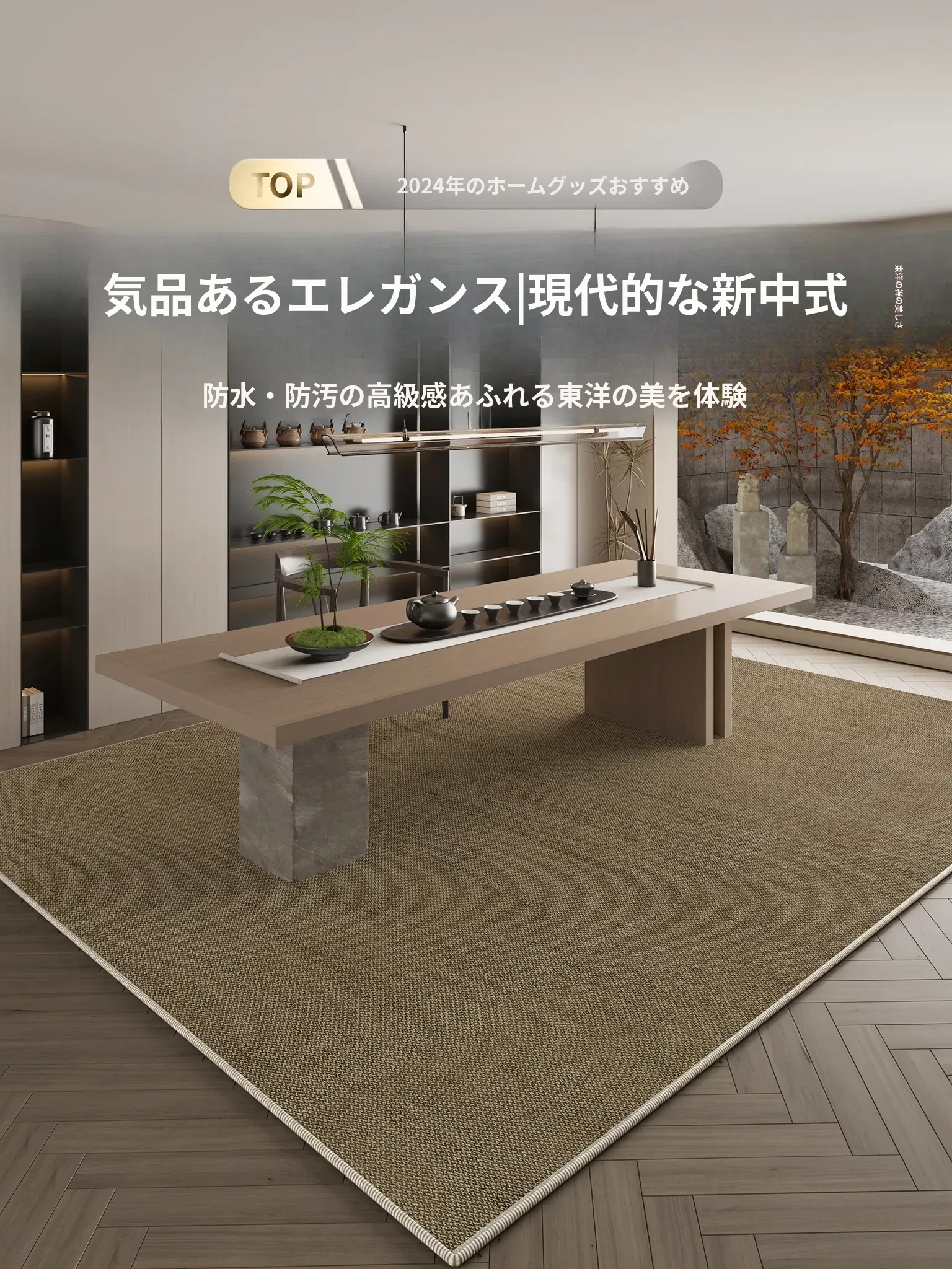 2025年新作!新中式デザインのリビング用カーペット - シンプルで高級感溢れる茶室スタイル。洗える、耐汚れ、手入れ簡単。あなたの寝室に最適な選択です!