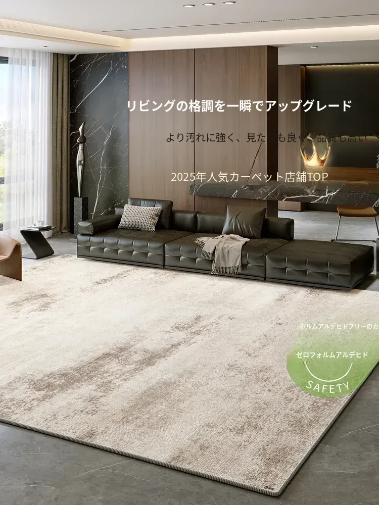 2025年新作!モダンでシンプルなデザインの洗濯不要、防水・防汚のリビング用カーペット。高級感あふれるソファやベッドサイドに最適!お部屋をスタイリッシュに演出します。