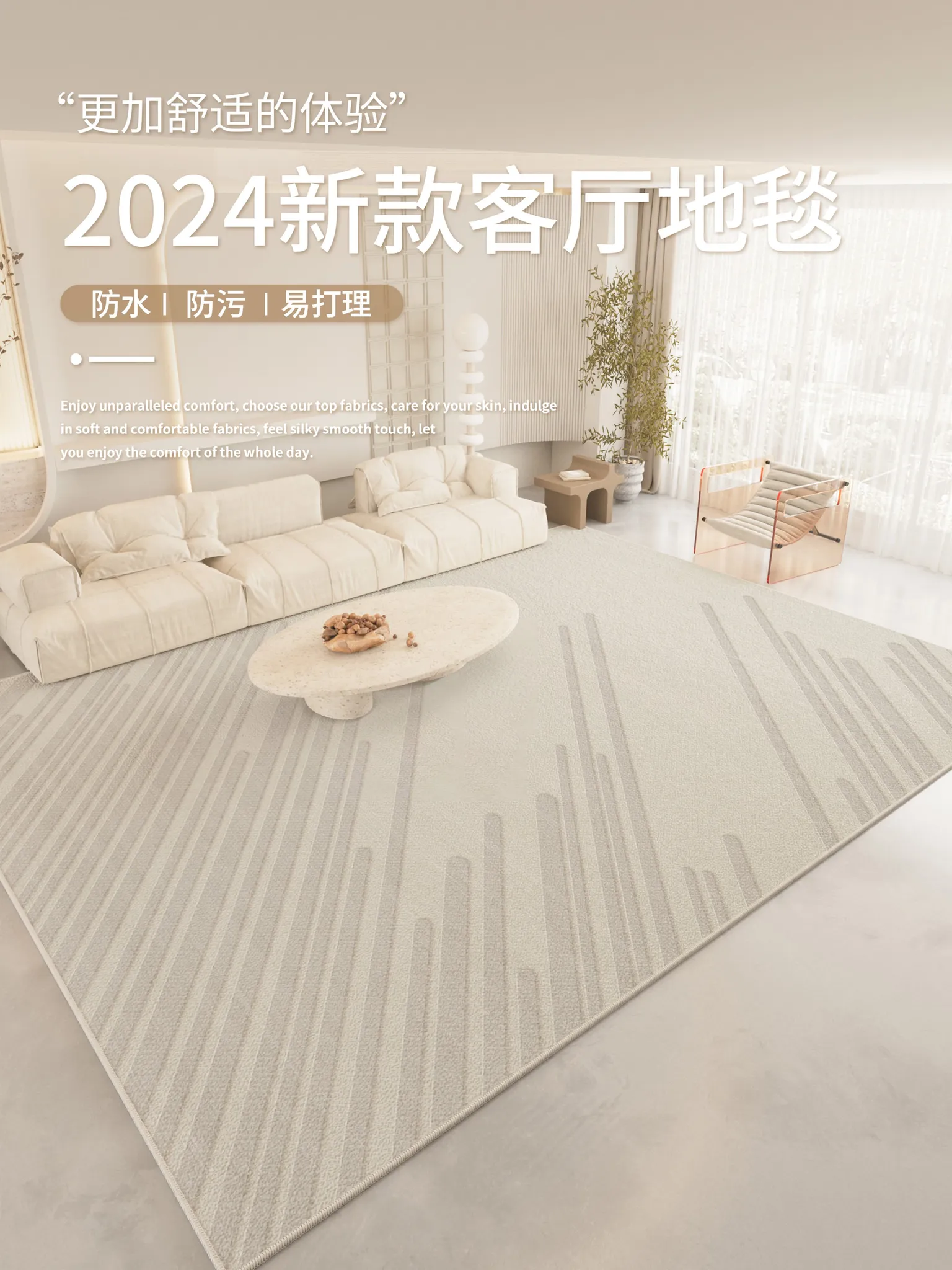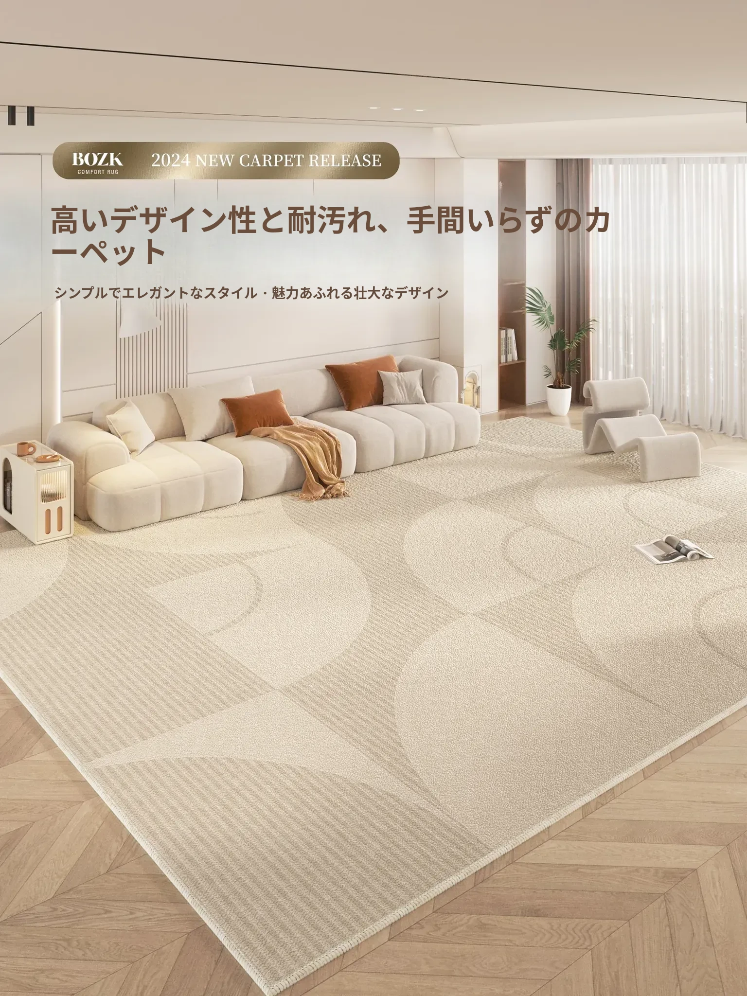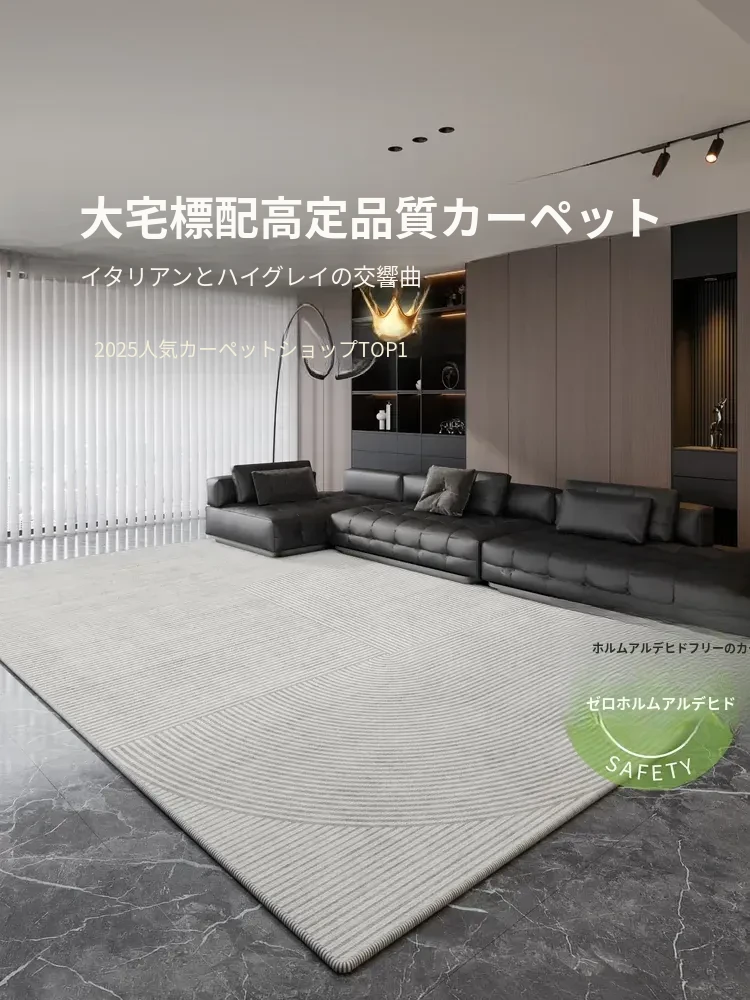 2025年新作!イタリアンミニマリズムの軽奢感漂う防水・防汚カーペット。広いリビングや寝室にぴったりの大面積全敷きタイプで、上質な空間を演出します!