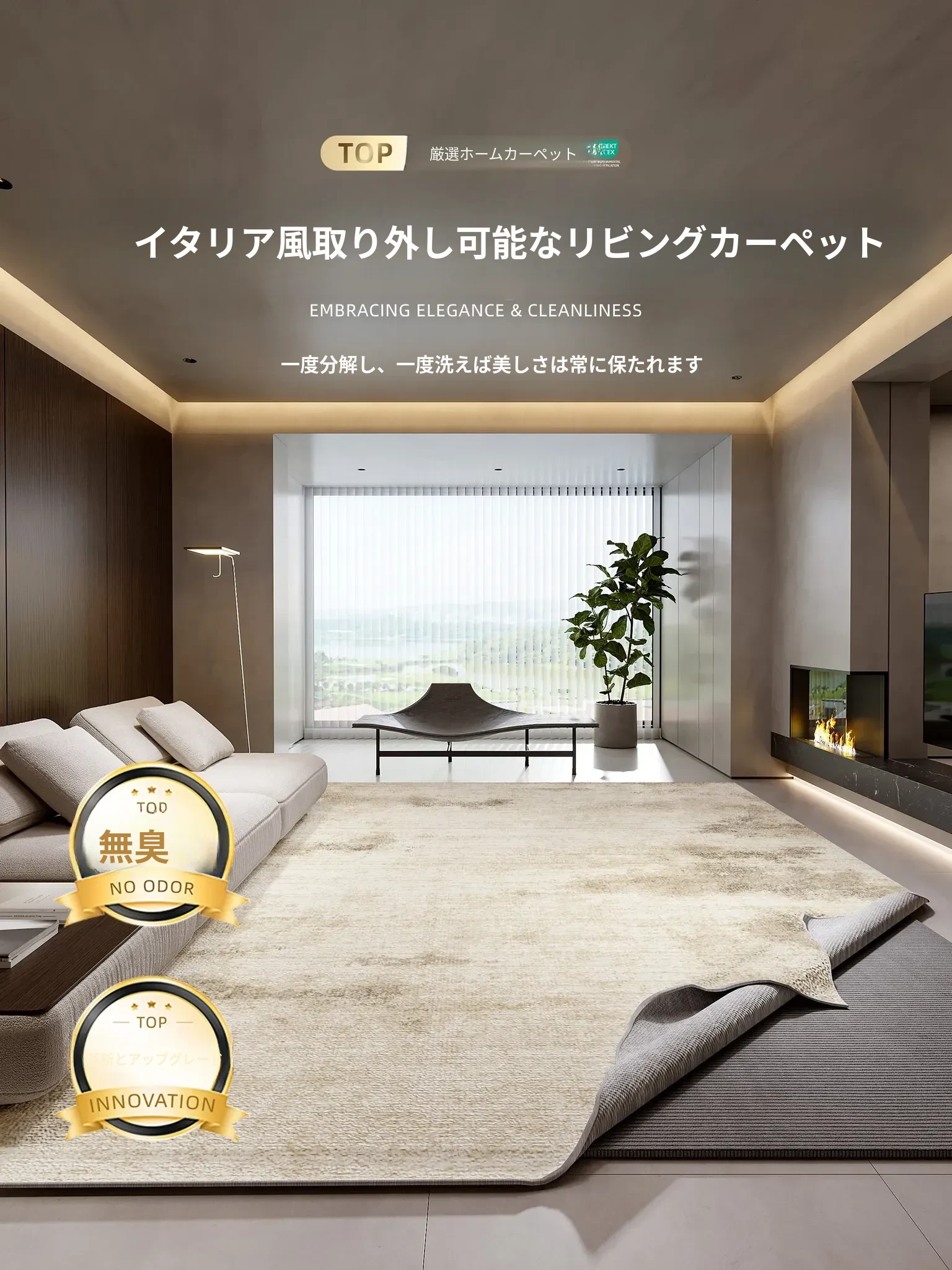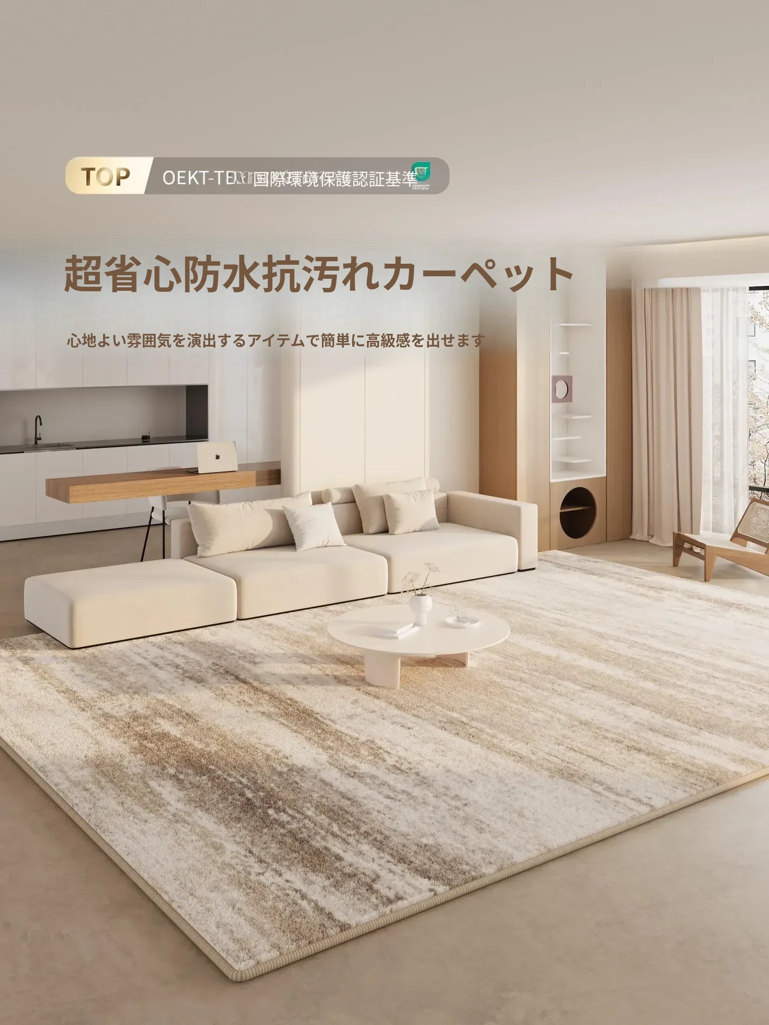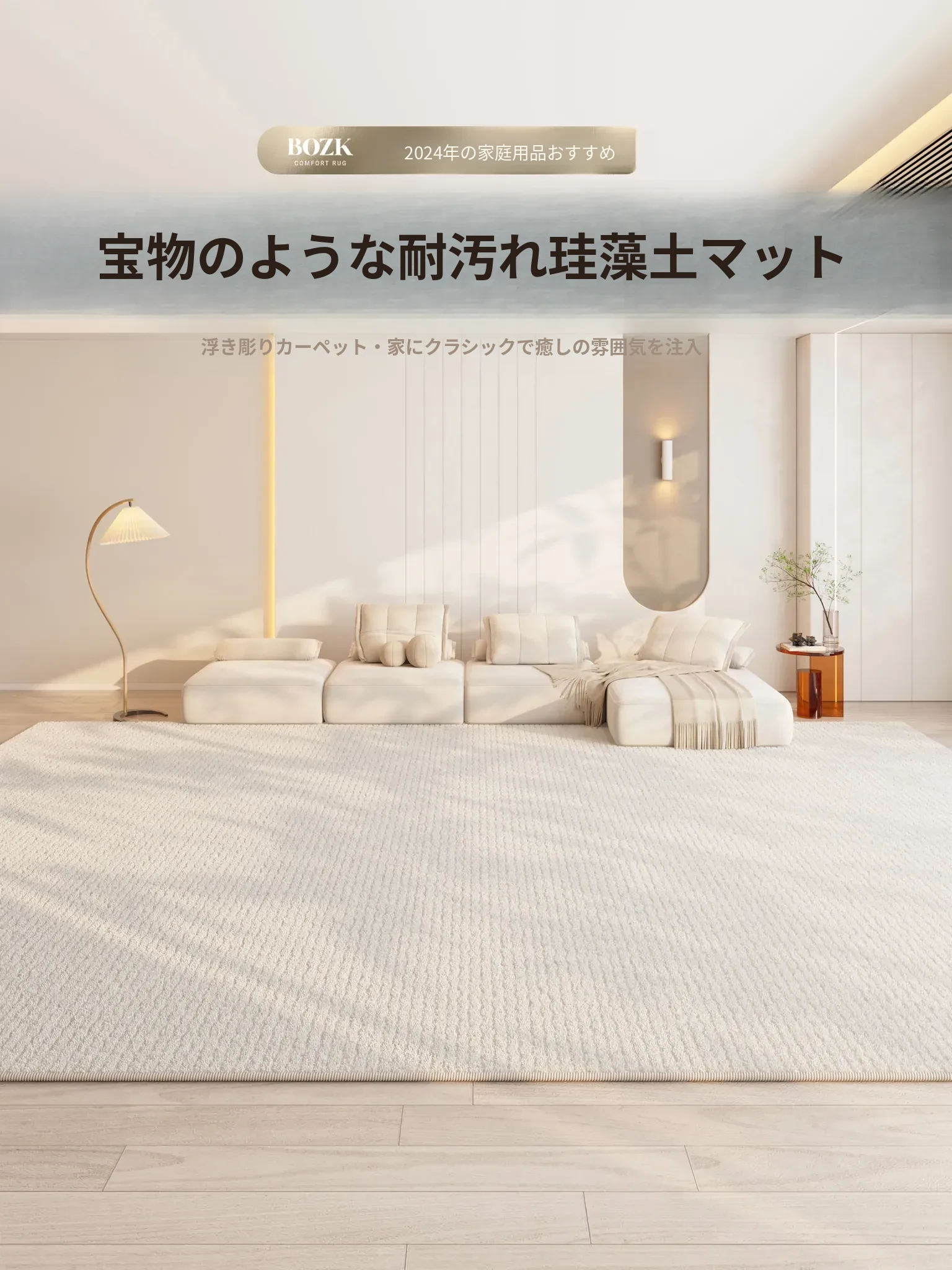 2025年新作!イタリアンミニマリズムの軽奢感漂う防水・防汚カーペット。広いリビングや寝室にぴったりの大面積全敷きタイプで、上質な空間を演出します!