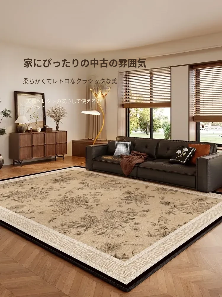 2025年新作!中古風の軽奢感満載カーペット - リビングにぴったり!洗浄不要でお手入れ簡単、大面積対応の便利なフロアマット!高級感あふれるデザインでお部屋を格上げ!