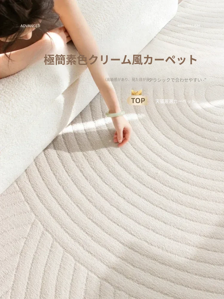 クリーム風リビングカーペット - お手入れ不要で簡単お掃除!高級感溢れるデザイン、寝室やソファの横にぴったりの防音マット。贅沢な空間を演出し、快適な生活をサポートします。