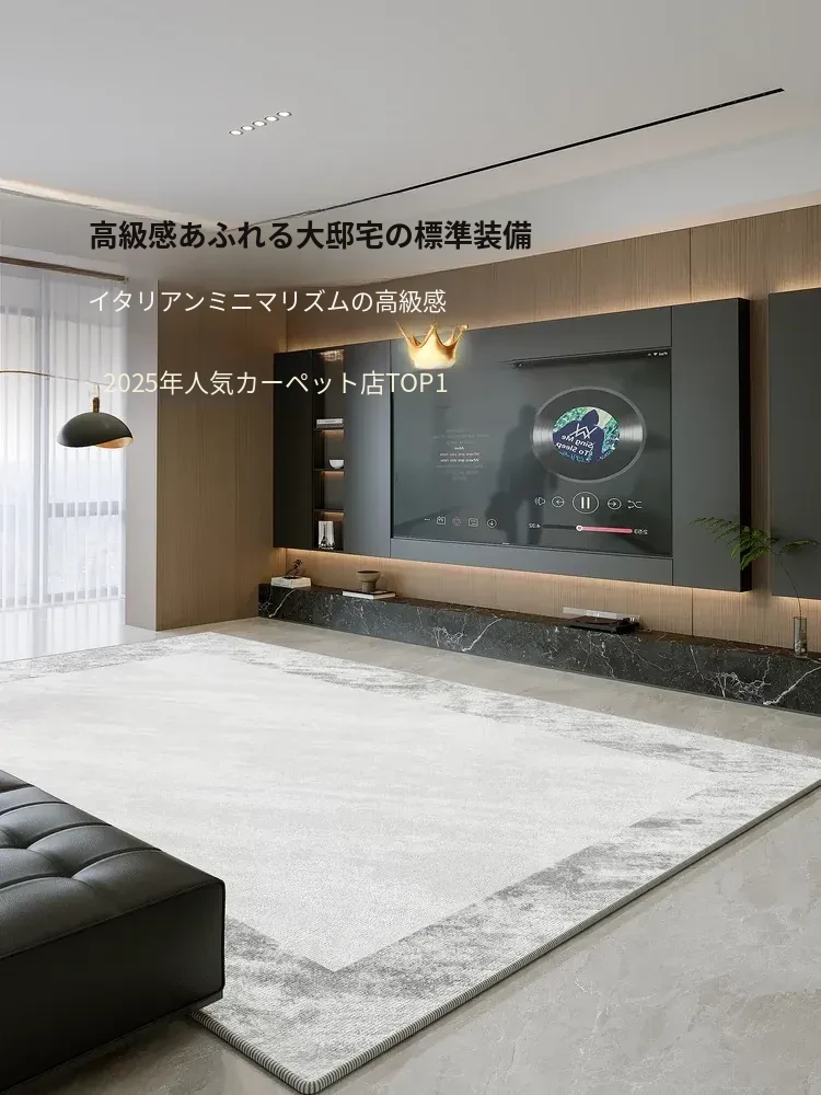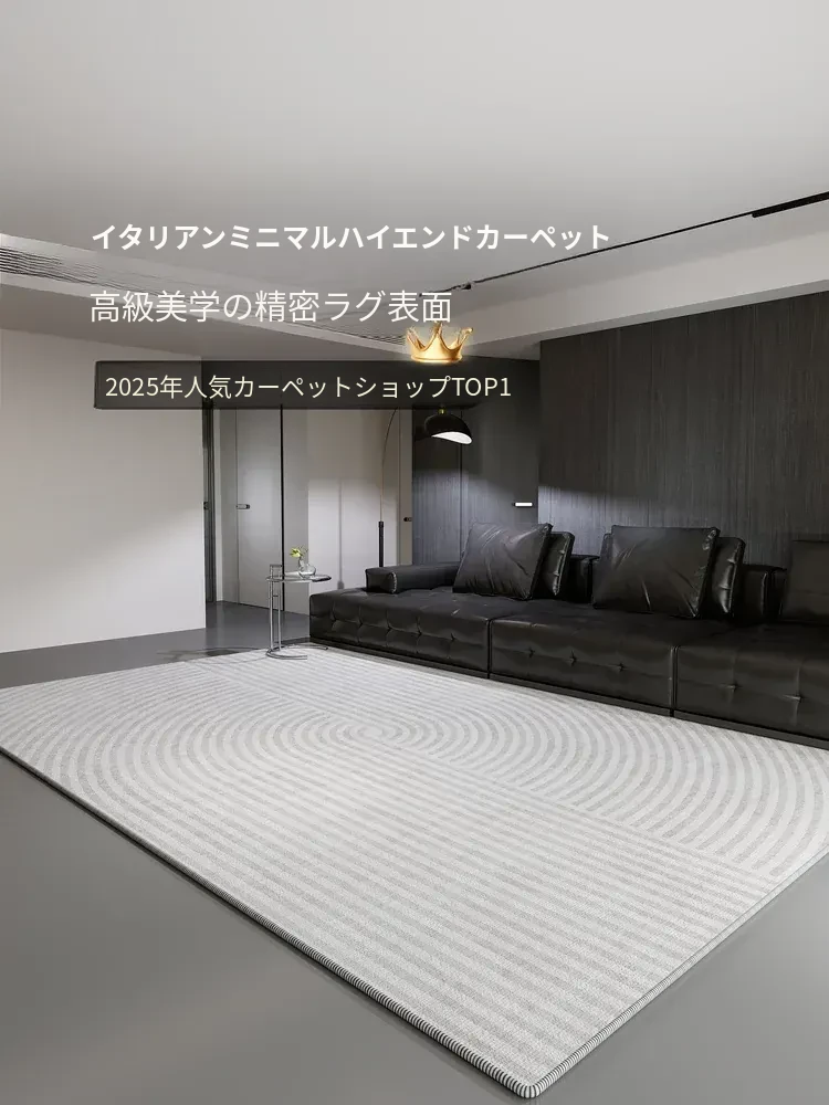 2025年新作!軽奢高級リビングカーペット - お手入れ簡単、撥水・防汚機能付きのイタリアンミニマリストデザイン。寝室のベッドサイドにもぴったり!おしゃれで機能的な空間を演出します。