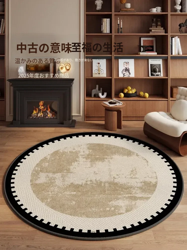 2026年新作!フレンチスタイルの中古風ラウンドカーペット - 高級感あふれるリビングやドレッシングルームにぴったり!快適なコンピューターチェアやメイクアップチェアとしても最適なデザインのマット。
