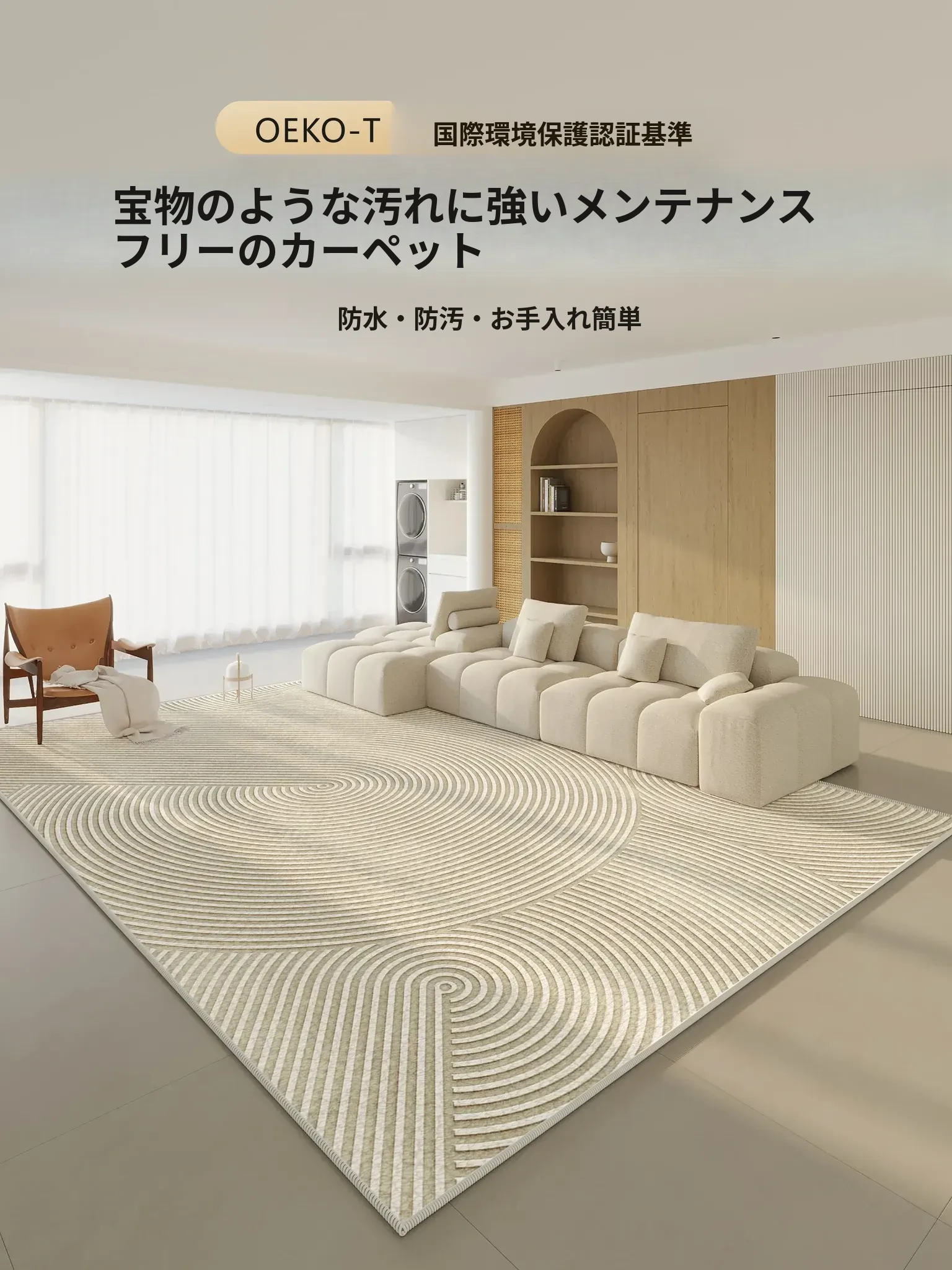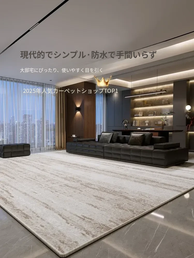 2025年新作!モダンでシンプルな防水・防汚カーペット。広いリビングに最適な高級感あふれるデザイン。お手入れ簡単、拭くだけで清潔維持!大面積カバーで快適な空間を演出します。