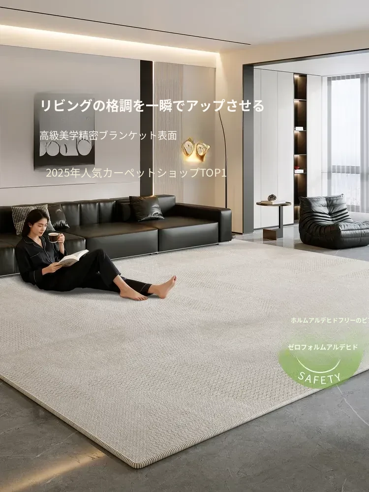 2025年新作!イタリアンミニマリズムデザインのリビングカーペット。お手入れ簡単で洗濯不要、軽やかな高級感を演出。寝室やベッドサイドにぴったりのスタイリッシュなマット。