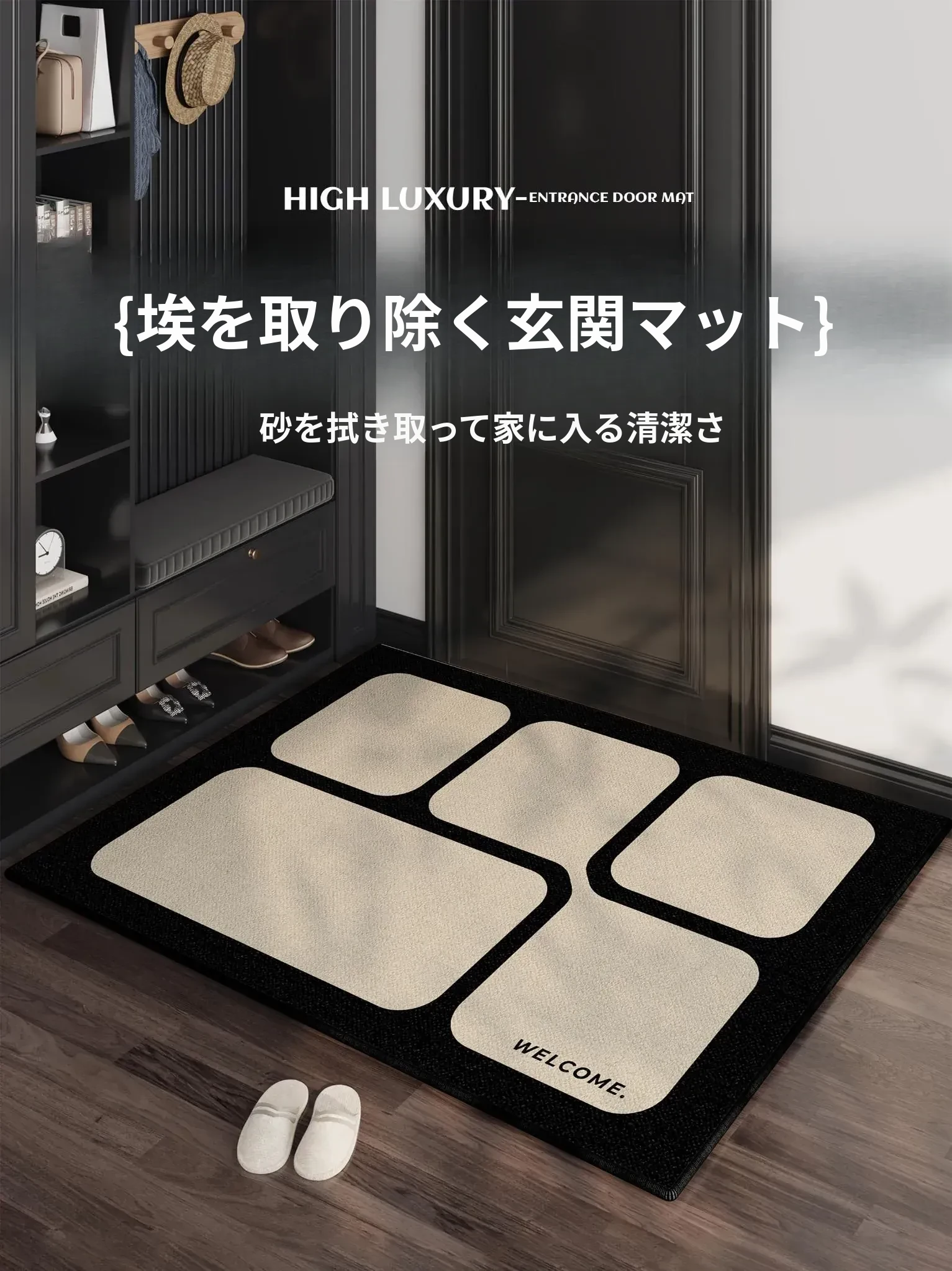 軽やかな高級感を演出する2025年新作の玄関マット!汚れに強く、自由にカット可能なデザインで、あなたの玄関をスタイリッシュに演出します。