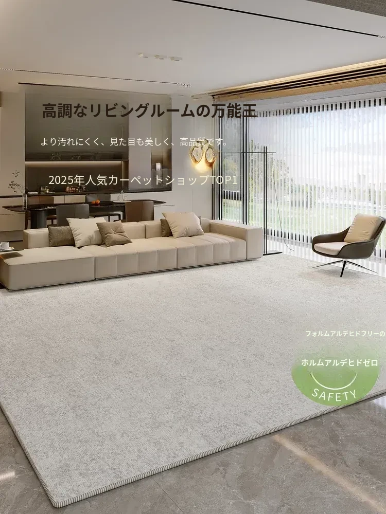 2025年新作!モダンでシンプルな防水・防汚カーペット。広いリビングに最適な高級感あふれるデザイン。お手入れ簡単、拭くだけで清潔維持!大面積カバーで快適な空間を演出します。
