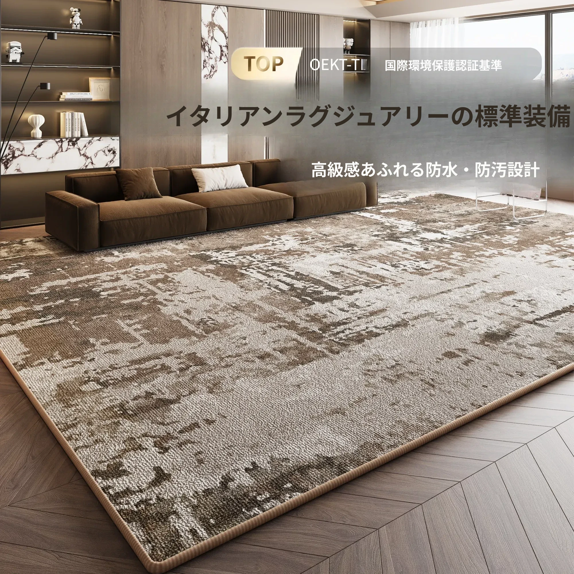イタリアンラグ ラグジュアリー2025新作!お手入れ簡単、洗濯不要の高級マット。リビングや寝室に最適、ソファやベッドサイドでも使える防水・防汚仕様!快適な空間を演出する一品です。