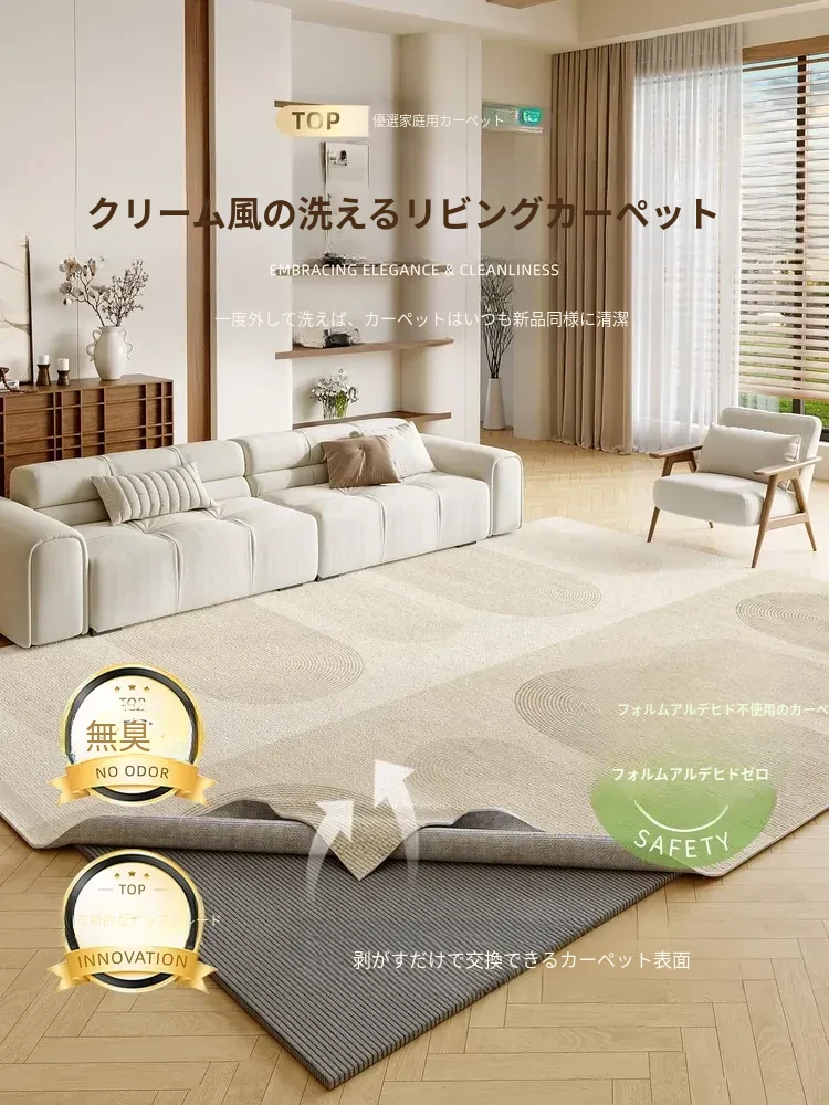 イタリアンミニマリストリビングカーペット2026年新作!洗わずにお手入れ簡単、豪華で高級感のあるソファマット。家庭用に最適、防水・防汚機能付き!