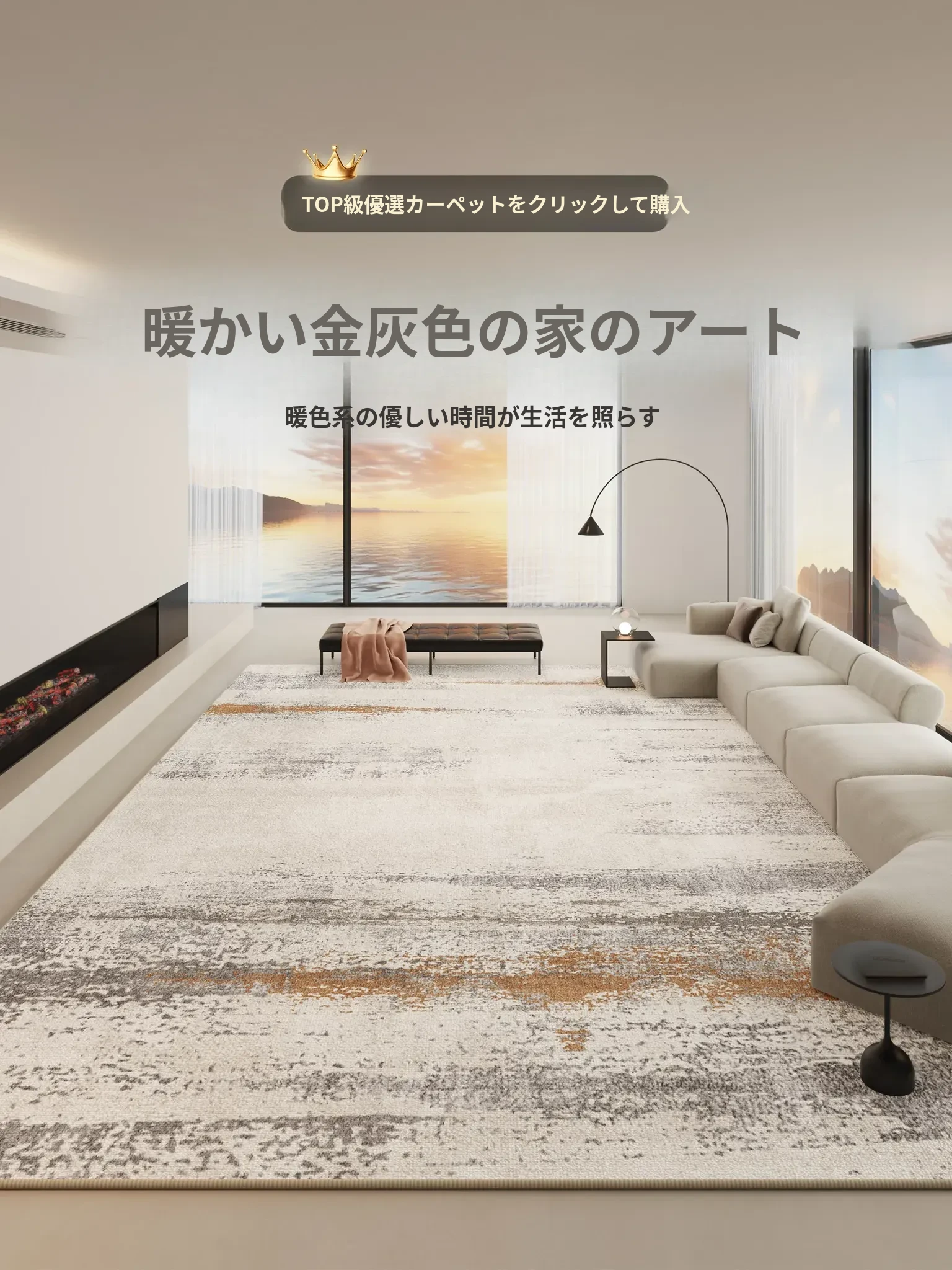 イタリアンミニマルデザイン2025年新作リビングカーペット、ラグジュアリーな高級感を演出!全室対応、寝室にも最適な大面積防音マット。あなたの空間を優雅に変身させます!