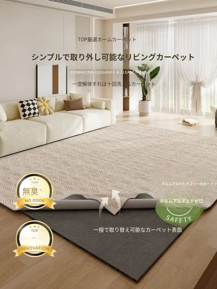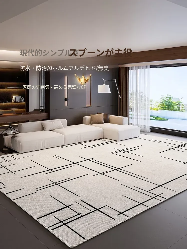 2025年新作!イタリアンミニマリズムデザインの防水・防汚リビングカーペット。おしゃれな軽奢スタイルで、ソファマットやベッドサイドマットにも最適。手間いらずで、お部屋をスタイリッシュに演出します!