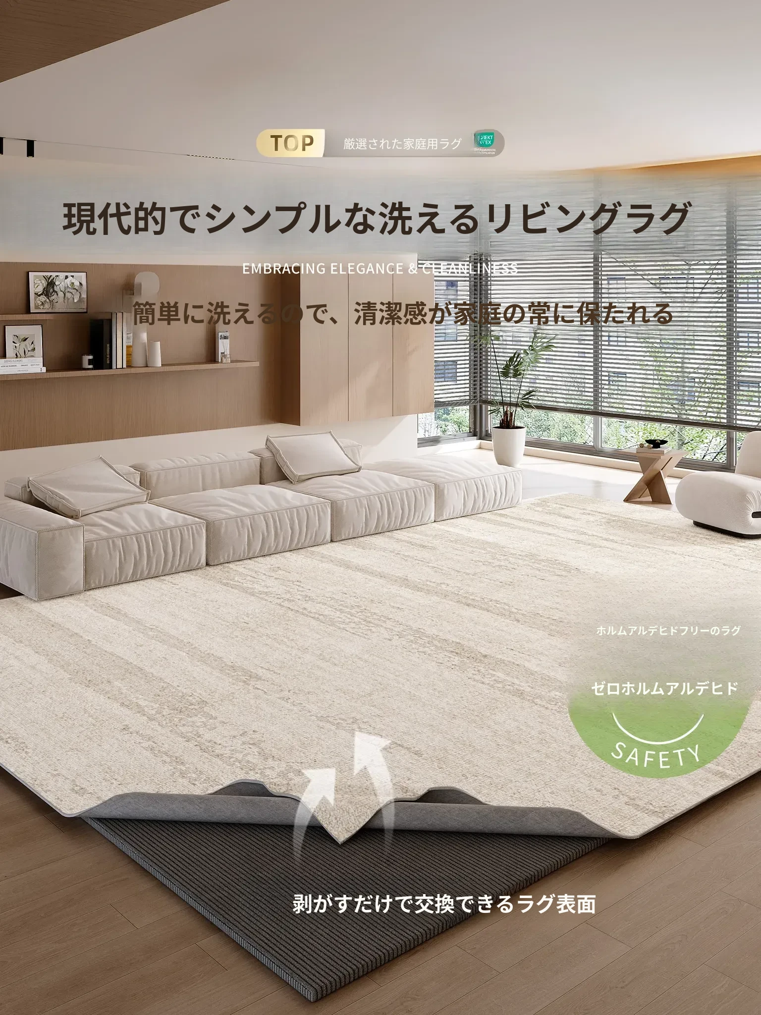 2025年最新デザイン!モダンでシンプルなリビングルーム用ラグマット。お手入れ簡単、拭き掃除可能!広い面積をカバーし、防水・防汚機能付きで家族みんなに安心の快適空間を提供します。