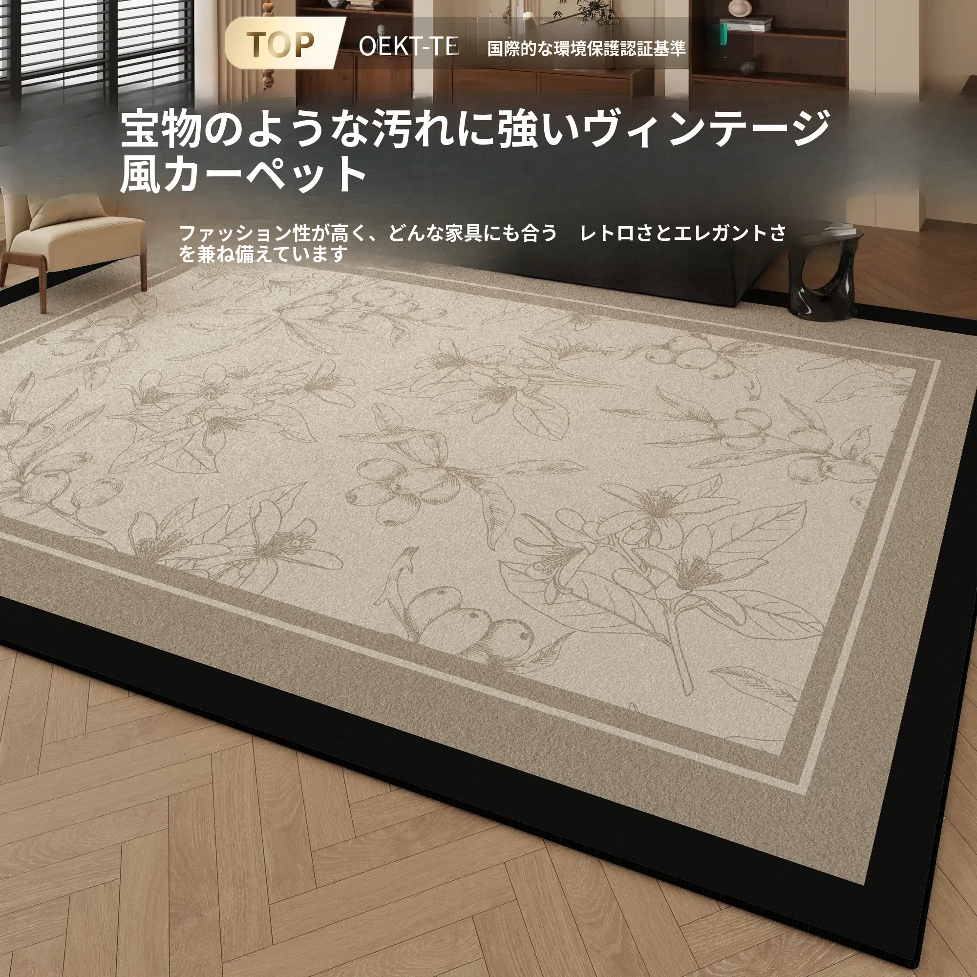 2026年新作!アンティーク風の洗えるカーペット - リビングや寝室に最適!ホルムアルデヒド不使用で安心、軽やかな高級感を演出します。おしゃれで機能的なデザインが魅力!