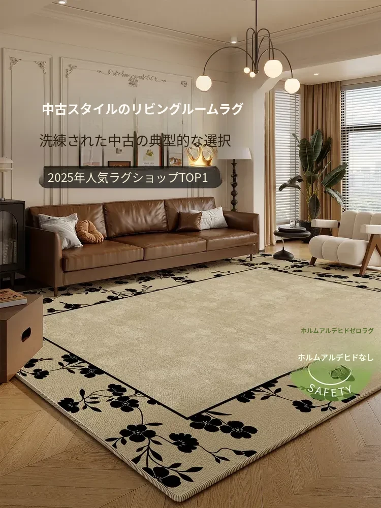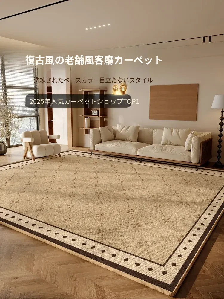 2025年新作!レトロなリビング用カーペット - ソファやテーブルにぴったり!お手入れ簡単&防水仕様で、フレンチラグジュアリーな雰囲気を演出。高級感満点のスタイルで、あなたのお部屋を彩ります!