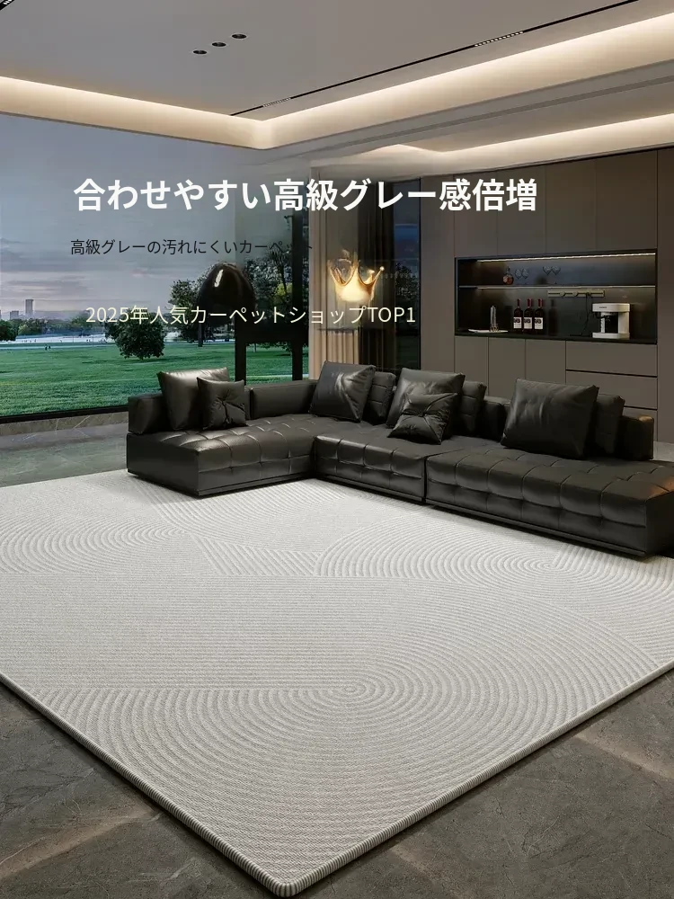 2026年新作!現代的シンプルデザインのリビング用カーペット - お手入れ簡単、ソファやテーブルに最適!防水・防汚機能付きで、大面積対応。快適な空間を演出します!