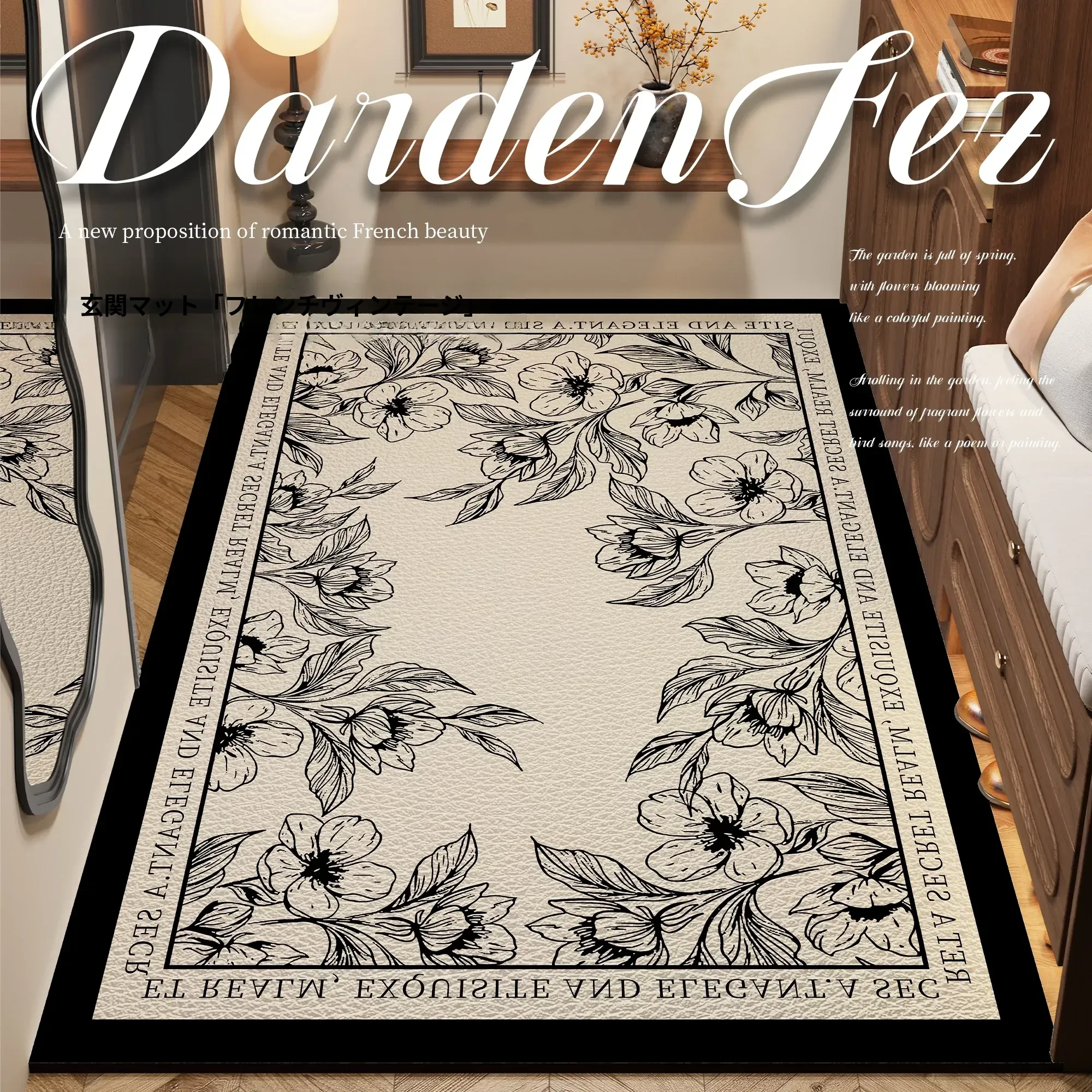 2025年新作!防水・防汚のフレンチビンテージ風ラグマット – 高級感あふれるリビング用カーペット、お手入れ不要でベッドサイドにも最適!おしゃれな空間を演出します。