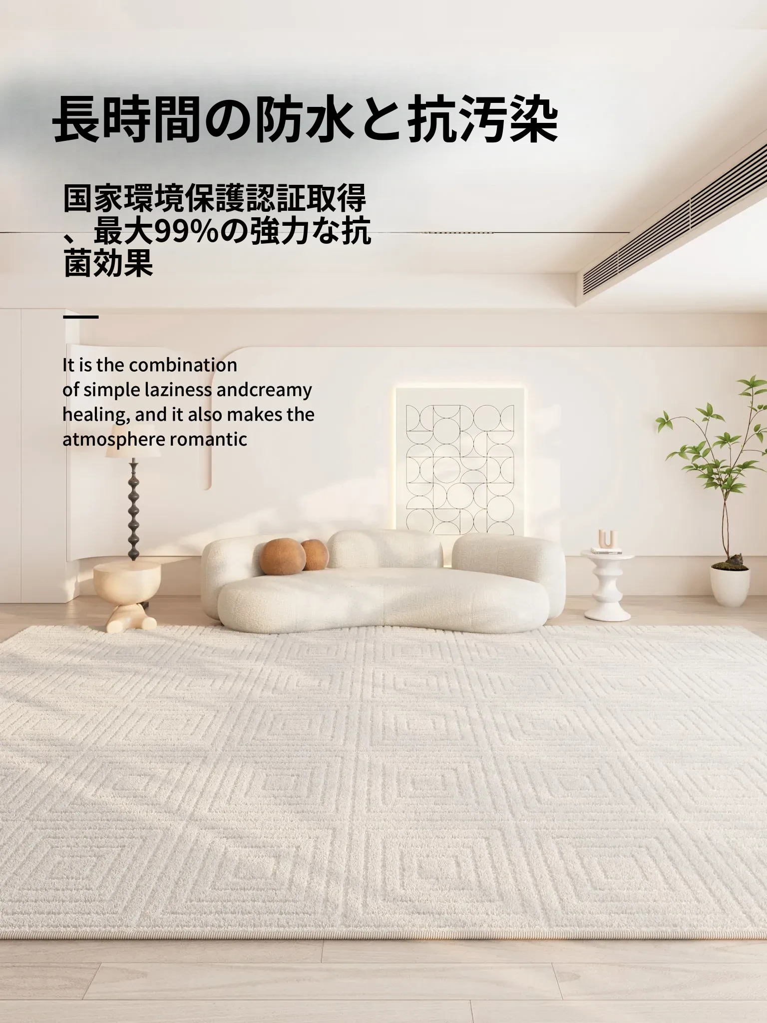 2025年新作!お手入れ簡単なクリーム風デザインの防水・防汚リビングカーペット。軽やかな高級感で、寝室にもぴったりのスタイリッシュな家用マット。快適な空間を演出します!