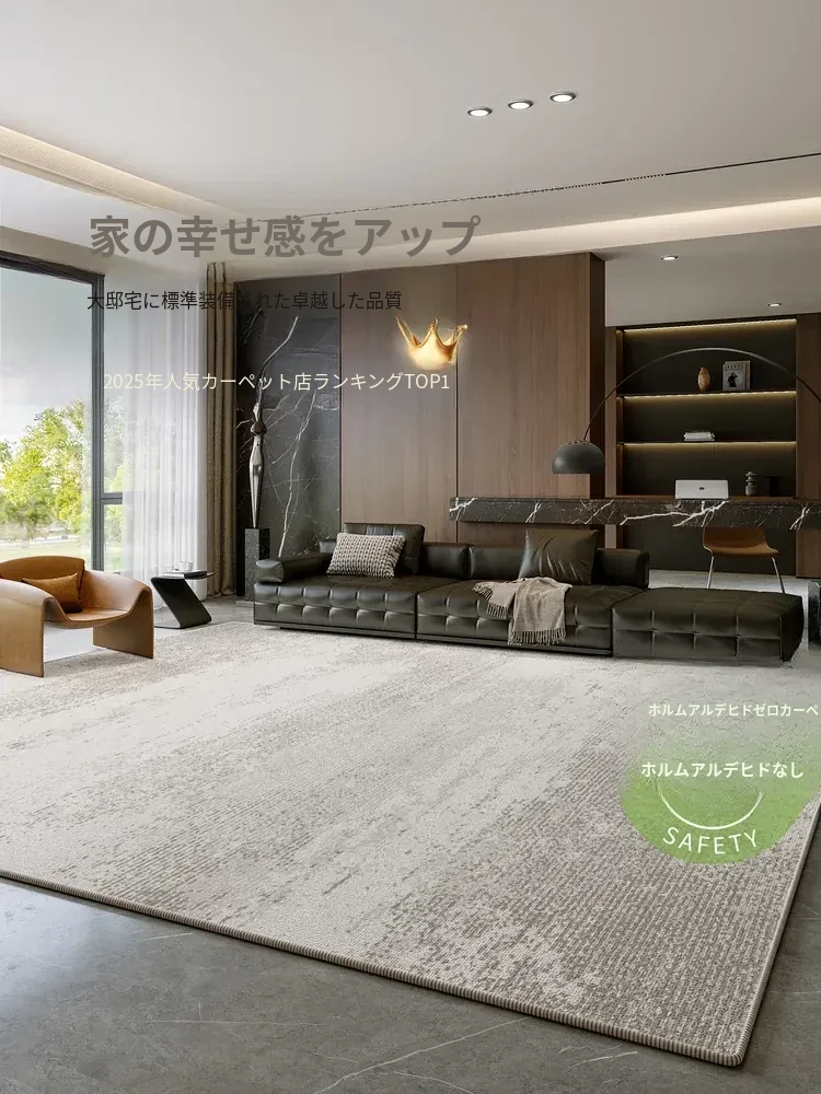 2025年新作!モダンでシンプルなデザインの洗濯不要、防水・防汚のリビング用カーペット。高級感あふれるソファやベッドサイドに最適!お部屋をスタイリッシュに演出します。